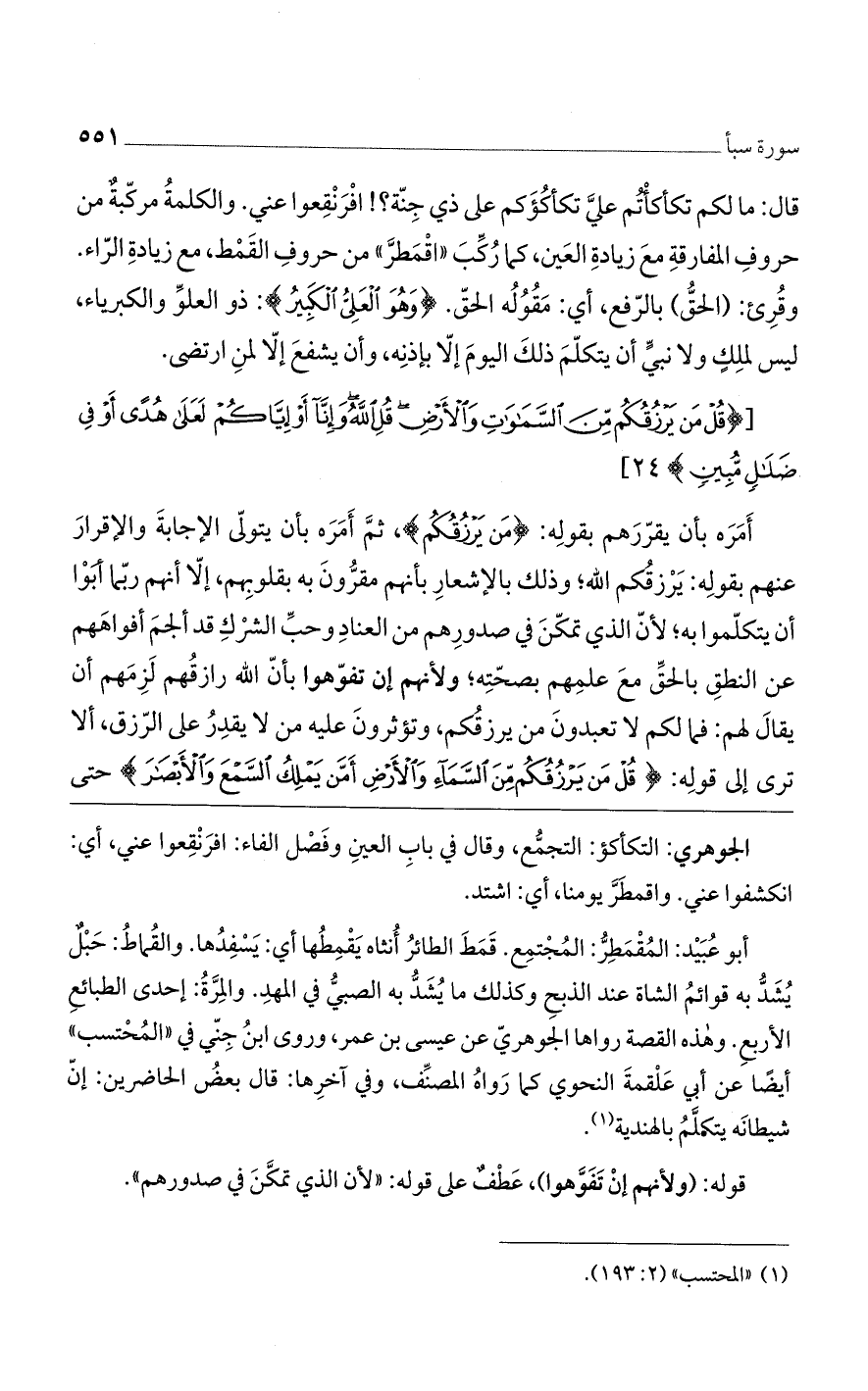 [قُلْ مَنْ يَرْزُقُكُمْ مِنَ السَّماواتِ وَالْأَرْضِ قُلِ الله وَإِنَّا أَوْ إِيَّاكُمْ لَعَلى هُدىً أَوْ فِي ضَلالٍ مُبِينٍ)] 24 [