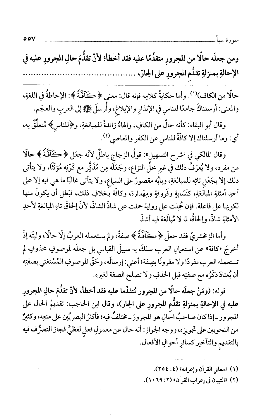 ومن جعله حالًا من المجرور متقدّمًا عليه فقد أخطأ؛ لأنّ تقدم حال المجرور عليه في الإحالة بمنزلة تقدم المجرور على الجار،