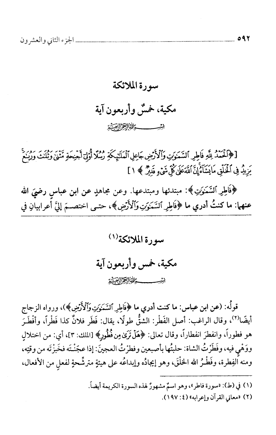 [(الْحَمْدُ لِلَّهِ فاطِرِ السَّماواتِ وَالْأَرْضِ جاعِلِ الْمَلائِكَةِ رُسُلاً أُولِي أَجْنِحَةٍ مَثْنى وَثُلاثَ وَرُباعَ يَزِيدُ فِي الْخَلْقِ ما يَشاءُ إِنَّ الله عَلى كُلِّ شَيْءٍ قَدِيرٌ)] 1 [