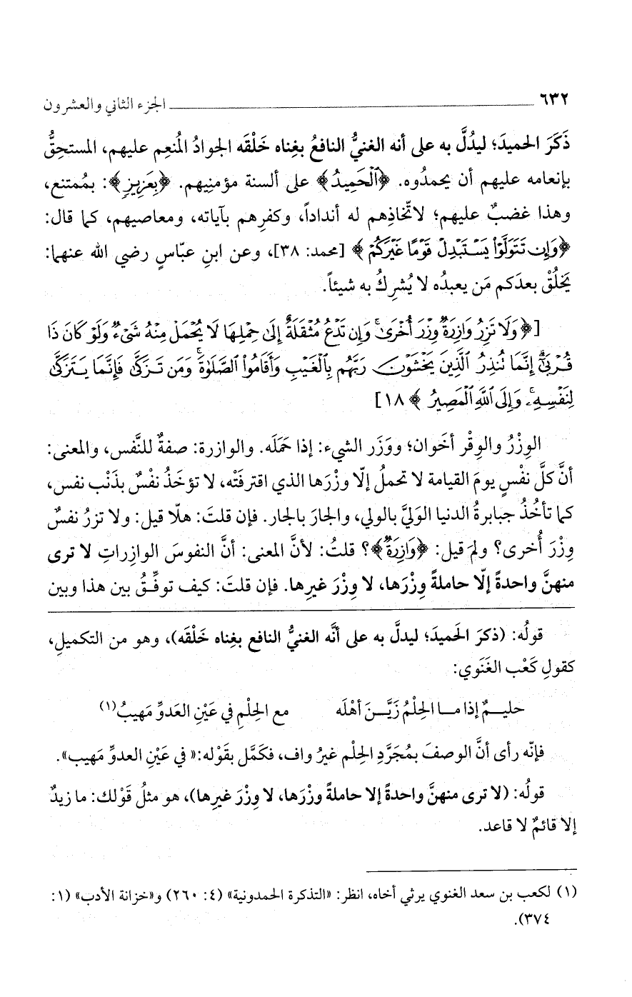 قولُه: (ذكرَ الحَميدَ؛ ليدلَّ به على أنَّه الغنيُّ النافع بغِناه خَلْقَه)، وهو من التكميلِ، كقولِ كَعْب الغَنَوي: