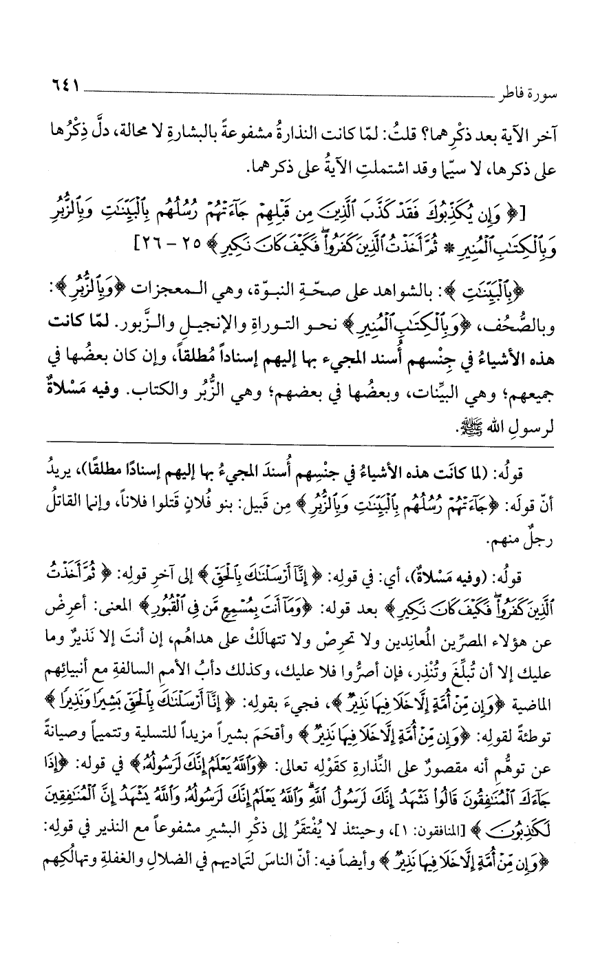 [(وَإِنْ يُكَذِّبُوكَ فَقَدْ كَذَّبَ الَّذِينَ مِنْ قَبْلِهِمْ جاءَتْهُمْ رُسُلُهُمْ بِالْبَيِّناتِ وَبِالزُّبُرِ وَبِالْكِتابِ الْمُنِيرِ (25) ثُمَّ أَخَذْتُ الَّذِينَ كَفَرُوا فَكَيْفَ كانَ نَكِيرِ)] 25 - 26 [