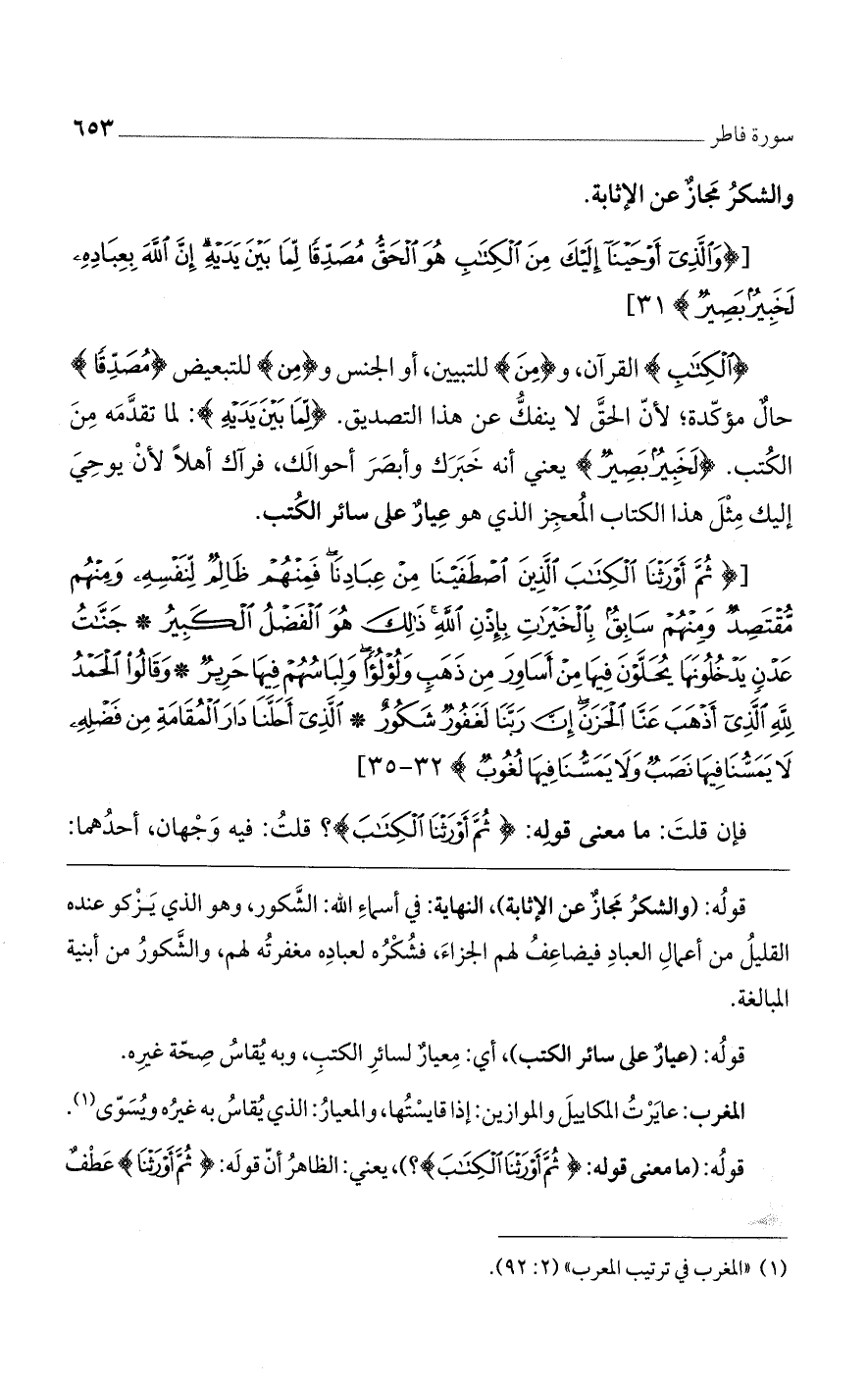قولُه: (ما معنى قوله: {ثُمَّ أَوْرَثْنَا الْكِتَابَ}؟ )، يعني: الظاهرُ أنّ قولَه: {ثُمَّ أَوْرَثْنَا} عَطْفٌ