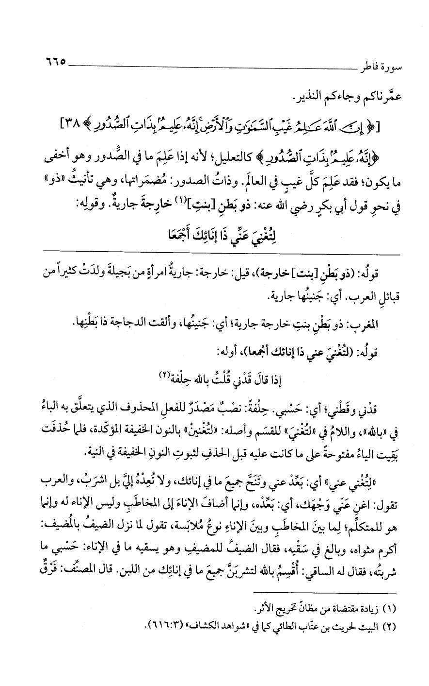 (إِنَّ الله عالِمُ غَيْبِ السَّماواتِ وَالْأَرْضِ إِنَّهُ عَلِيمٌ بِذاتِ الصُّدُورِ)] 38 [