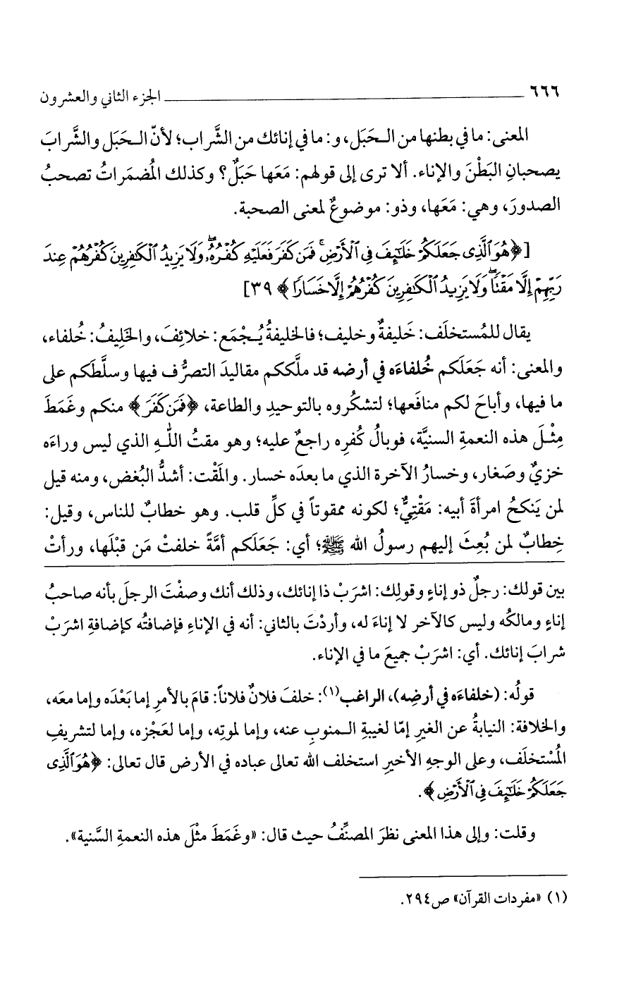[(هُوَ الَّذِي جَعَلَكُمْ خَلائِفَ فِي الْأَرْضِ فَمَنْ كَفَرَ فَعَلَيْهِ كُفْرُهُ وَلا يَزِيدُ الْكافِرِينَ كُفْرُهُمْ عِنْدَ رَبِّهِمْ إِلاَّ مَقْتاً وَلا يَزِيدُ الْكافِرِينَ كُفْرُهُمْ إِلاَّ خَساراً)] 39 [
