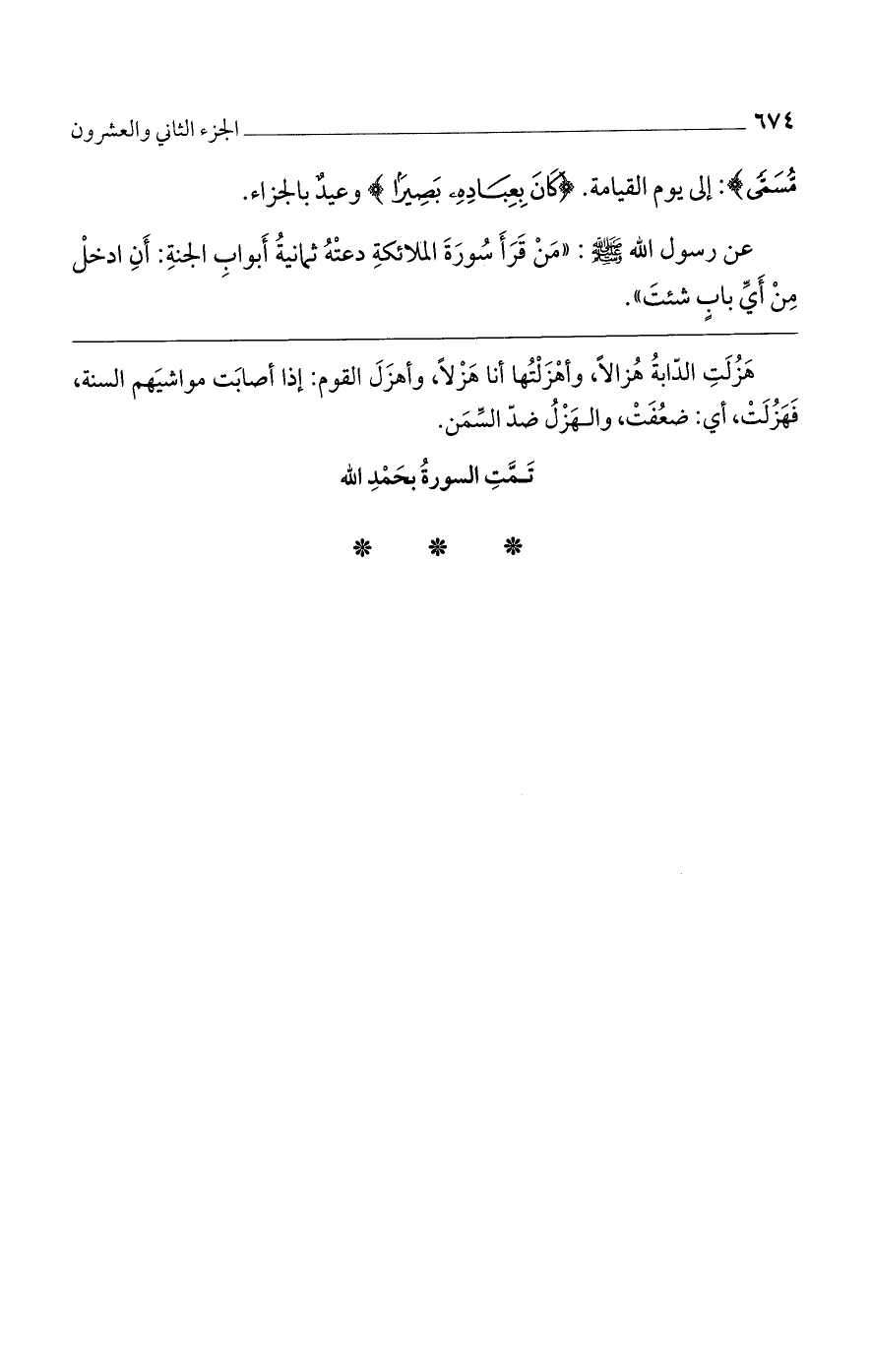 عن رسول الله صلى الله عليه وسلم: «من قرأ سورة الملائكة دعته ثمانية أبواب الجنة: أن أدخل من أى باب شئت».