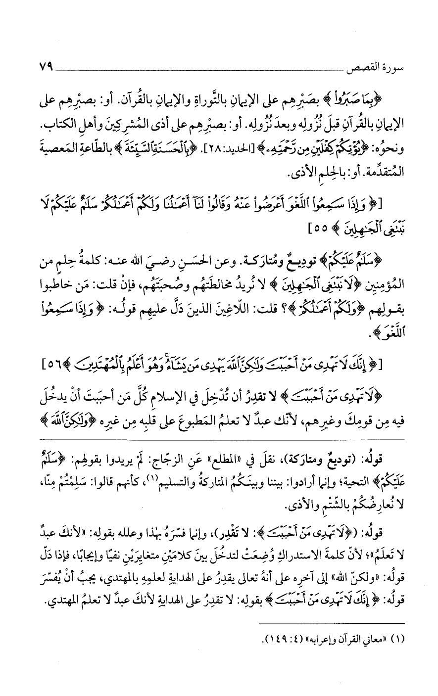 {سَلَامُ عَلَيْكُمْ} تودِيعٌ ومُتارَكة. وعن الحَسنِ رضيَ الله عنه: كلمةُ حِلمٍ من المُؤمِنين {لاَ نَبْتَغِي الجَاهِلِينَ} لا نُريدُ مخالطَتهُم وصُحبَتَهُم، فإنْ قلت: مَن خاطبوا بقولِهم {وَلَكُمْ أَعْمَالُكُمْ}؟ قلت: اللاّغِينَ الذينَ دَلَّ عليهِم قولُه: {وَإِذَا سَمِعُوا اللَّغْوَ}.