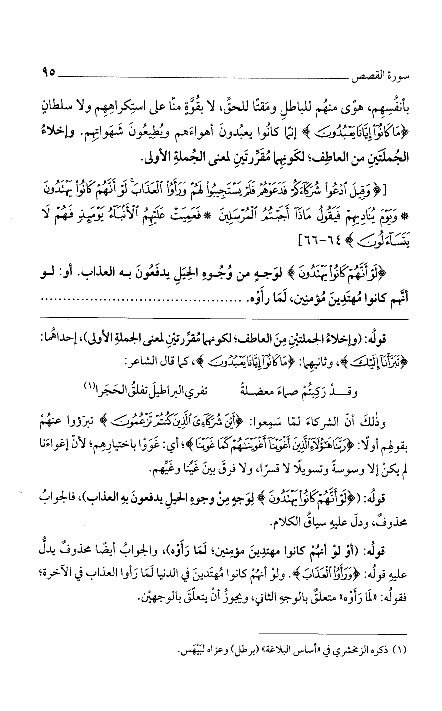 قولُه: (أوْ لوْ أنهُمْ كانوا مهتدِينَ مؤمِنين؛ لَمَا رَأَوْه)، والجوابُ أيضًا محذوفٌ يدلُّ عليهِ قولُه: {وَرَأَوْا العَذَابَ}. ولوْ أنهُمْ كانوا مُهتَدينَ في الدنيا لَمَا رَأوا العذاب في الآخرة؛ فقولُه: ((لَمَا رَأَوْه)) متعلقٌ بالوجهِ الثاني، ويجوزُ أنْ يتعلّقَ بالوجهيْن.