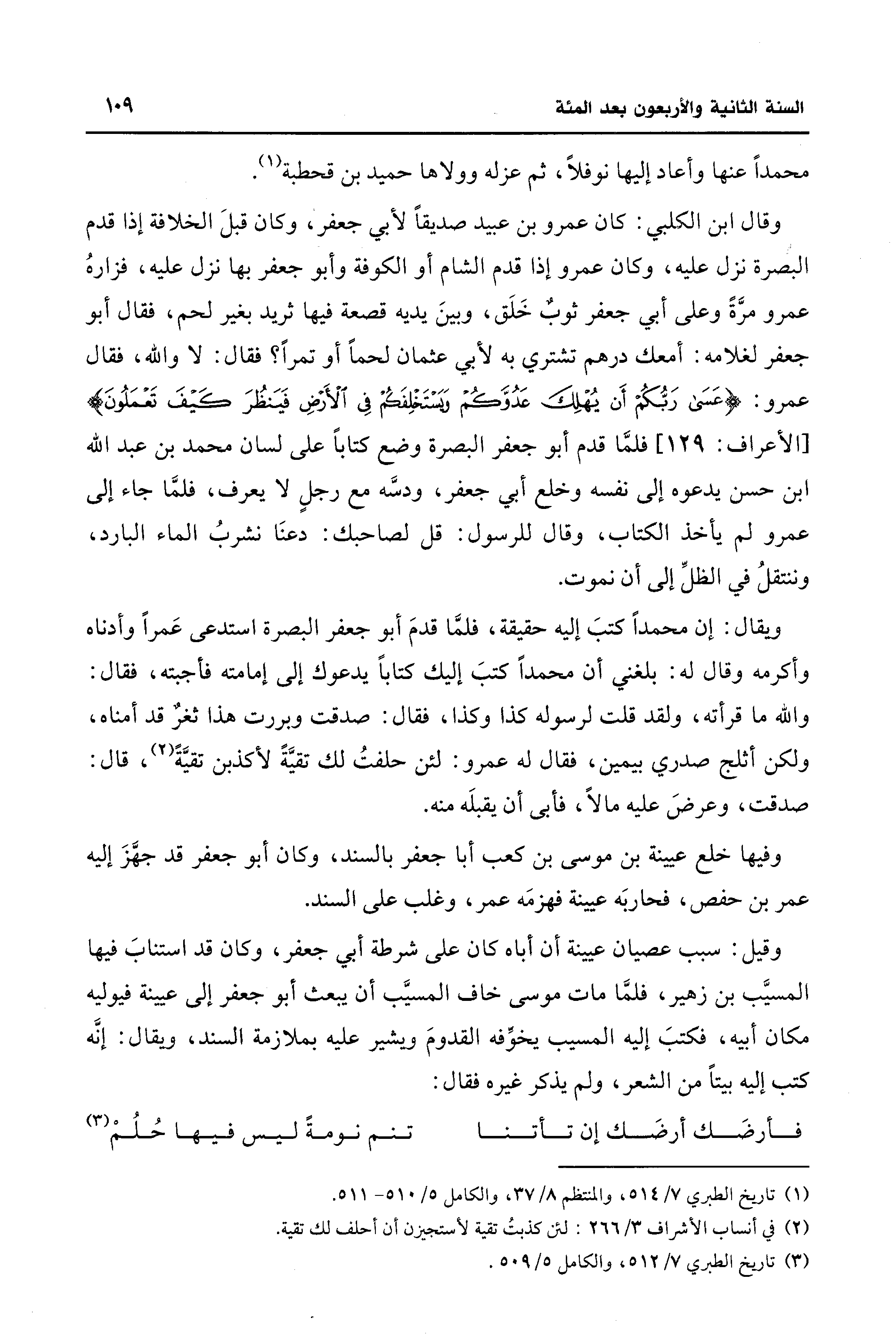 (¬1) تاريخ الطبري 7/ 514، والمنتظم 8/ 37، والكامل 5/ 510 - 511.