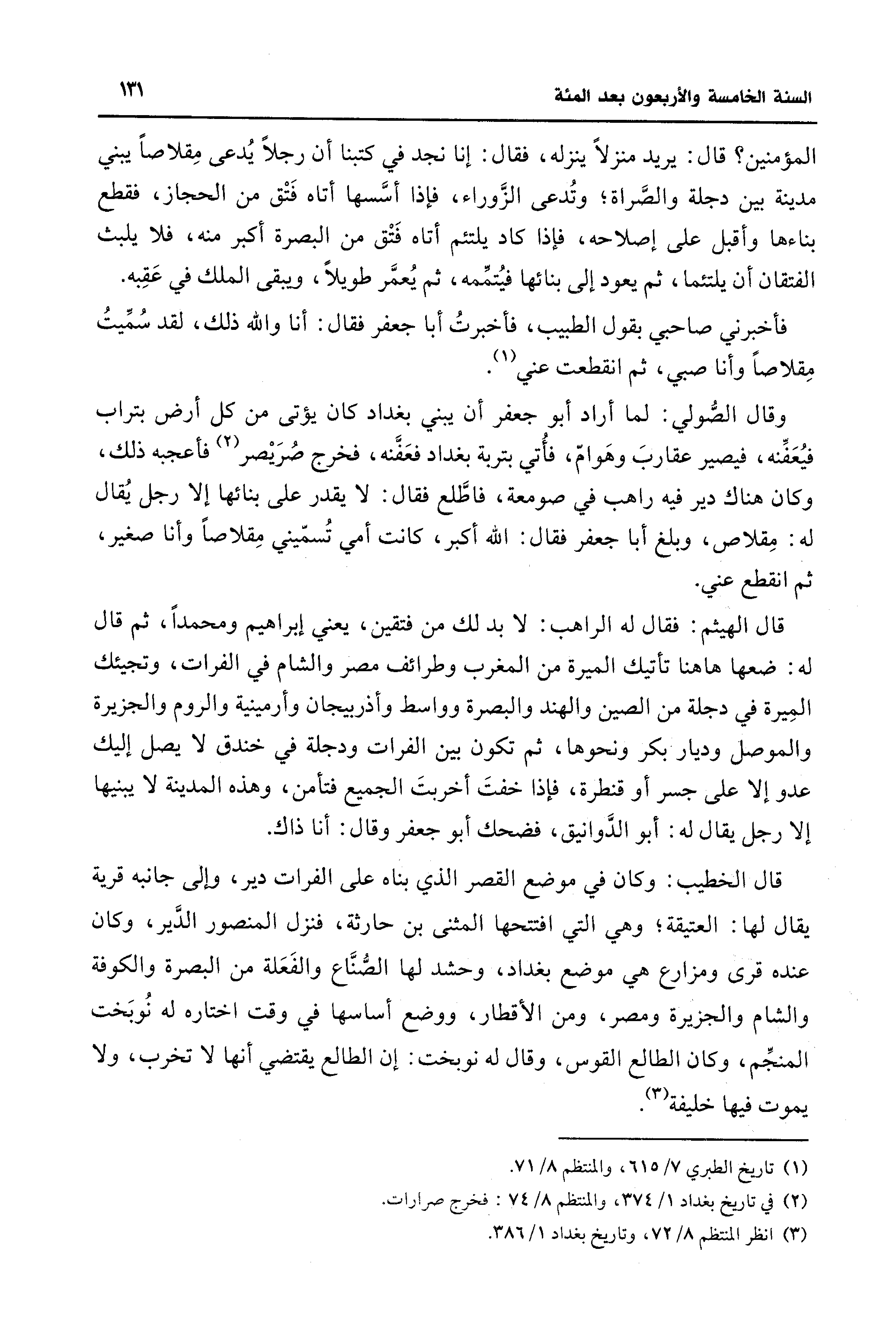 (¬3) انظر المنتظم 8/ 72، وتاريخ بغداد 1/ 386.