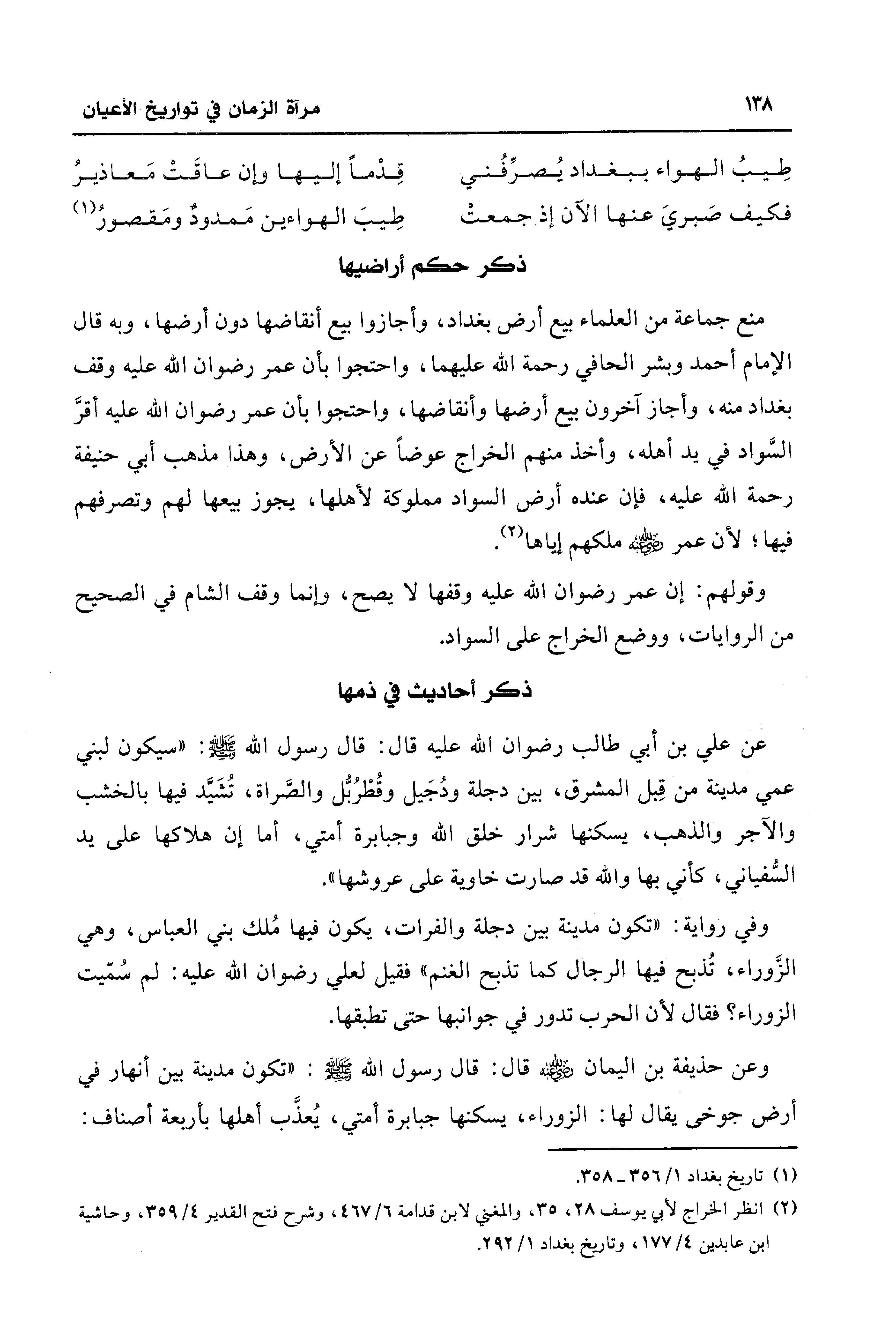 (¬2) انظر الخراج لأبي يوسف 28، 35، والمغني لابن قدامة 6/ 467، وشرح فتح القدير 4/ 359، وحاشية ابن عابدين 4/ 177، وتاريخ بغداد 1/ 292.