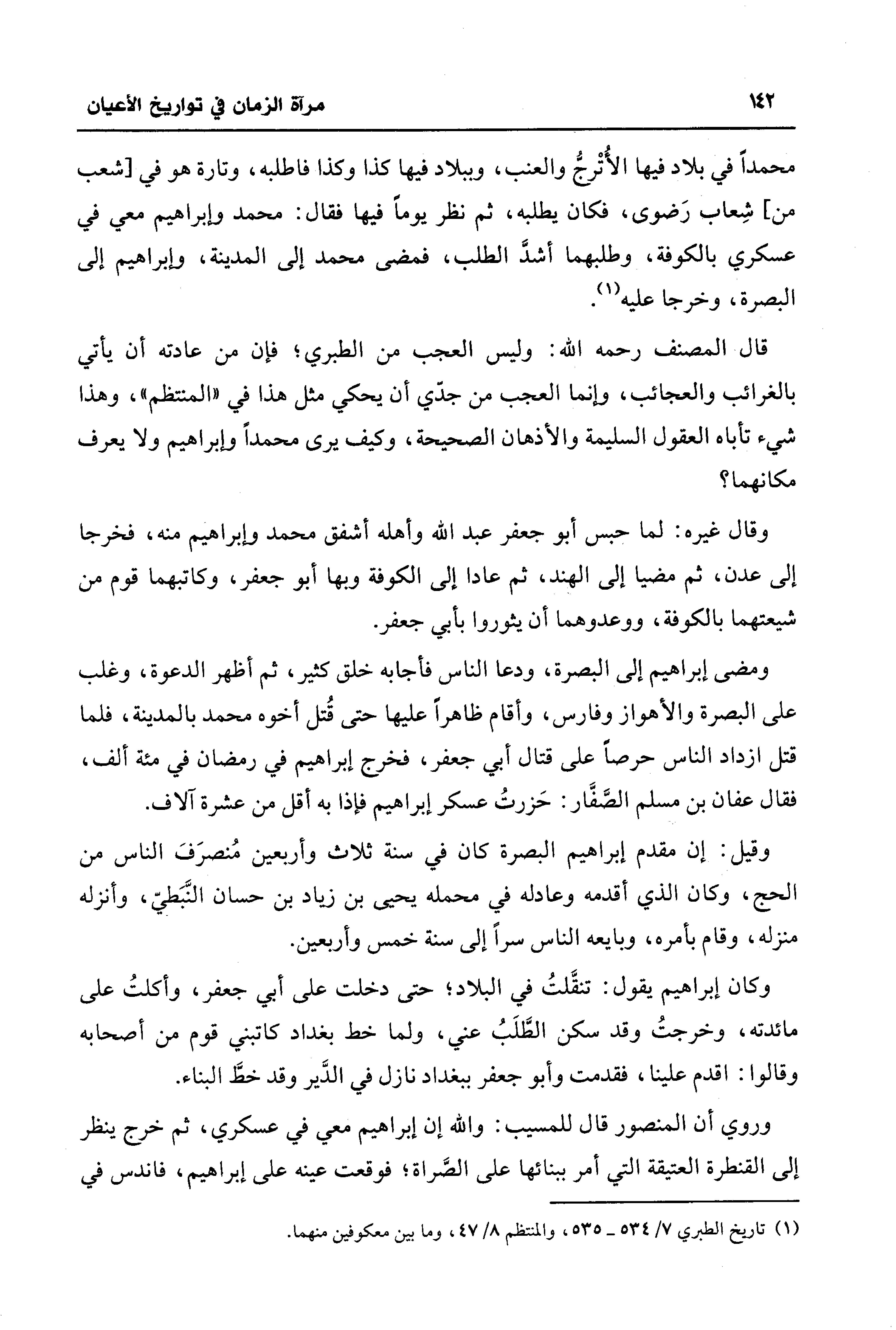 محمدًا في بلاد فيها الأُتْرجُّ والعنب، وببلاد فيها كذا وكذا فاطلبه، وتارة هو في [شعب من] شِعاب رَضوى، فكان يطلبه، ثم نظر يومًا فيها فقال: محمَّد وإبراهيم معي في عسكري بالكوفة، وطلبهما أشدَّ الطلب، فمضى محمَّد إلى المدينة، وإبراهيم إلى البصرة، وخرجا عليه (¬1).