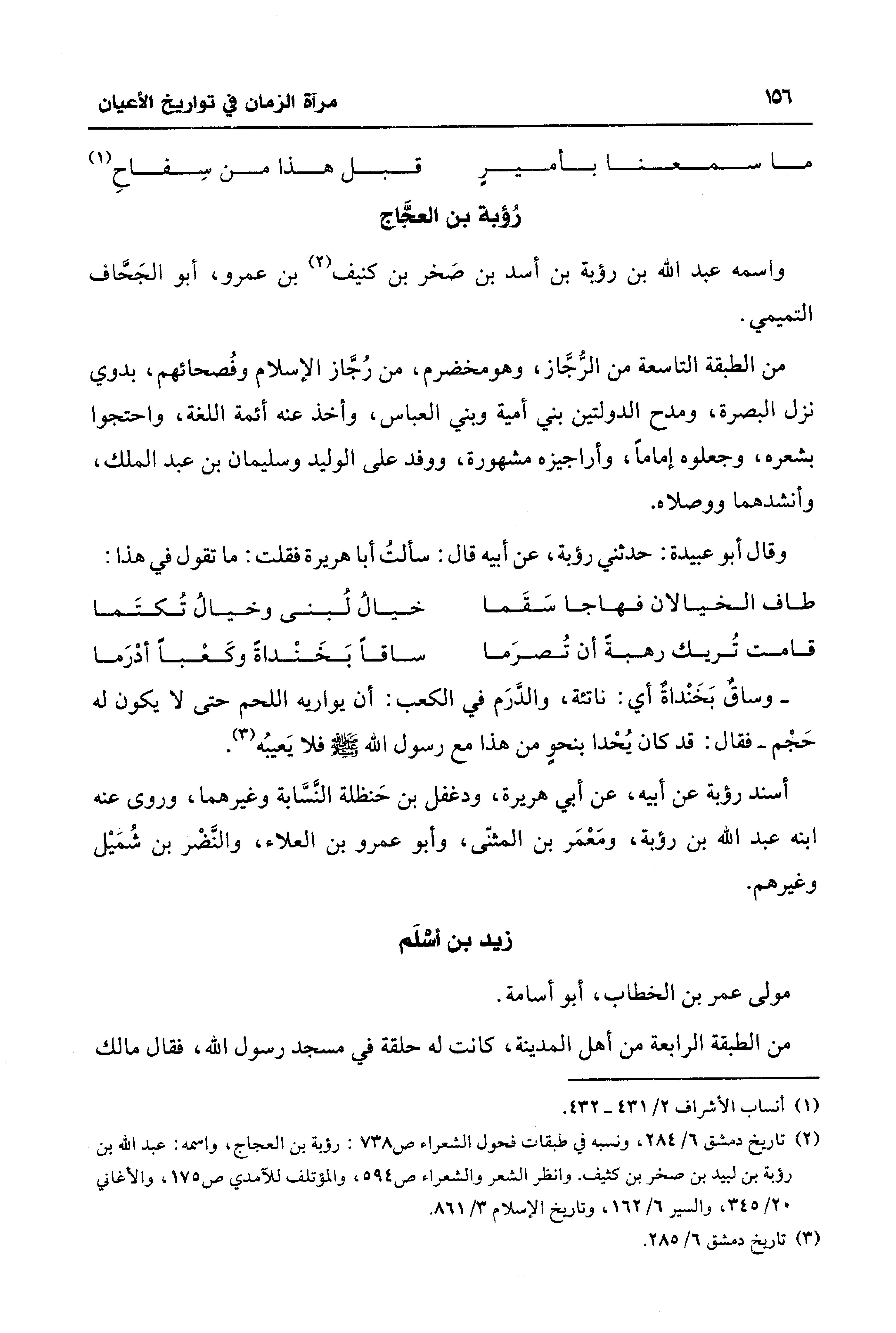 (¬2) تاريخ دمشق 6/ 284، ونسبه في طبقات فحول الشعراء ص 738: رؤبة بن العجاج، واسمه: عبد الله بن رؤبة بن لبيد بن صخر بن كثيف. انظر الشعر والشعراء ص 594، والمؤتلف للآمدي ص 175، والأغاني 20/ 345، والسير 6/ 162، وتاريخ الإسلام 3/ 861.