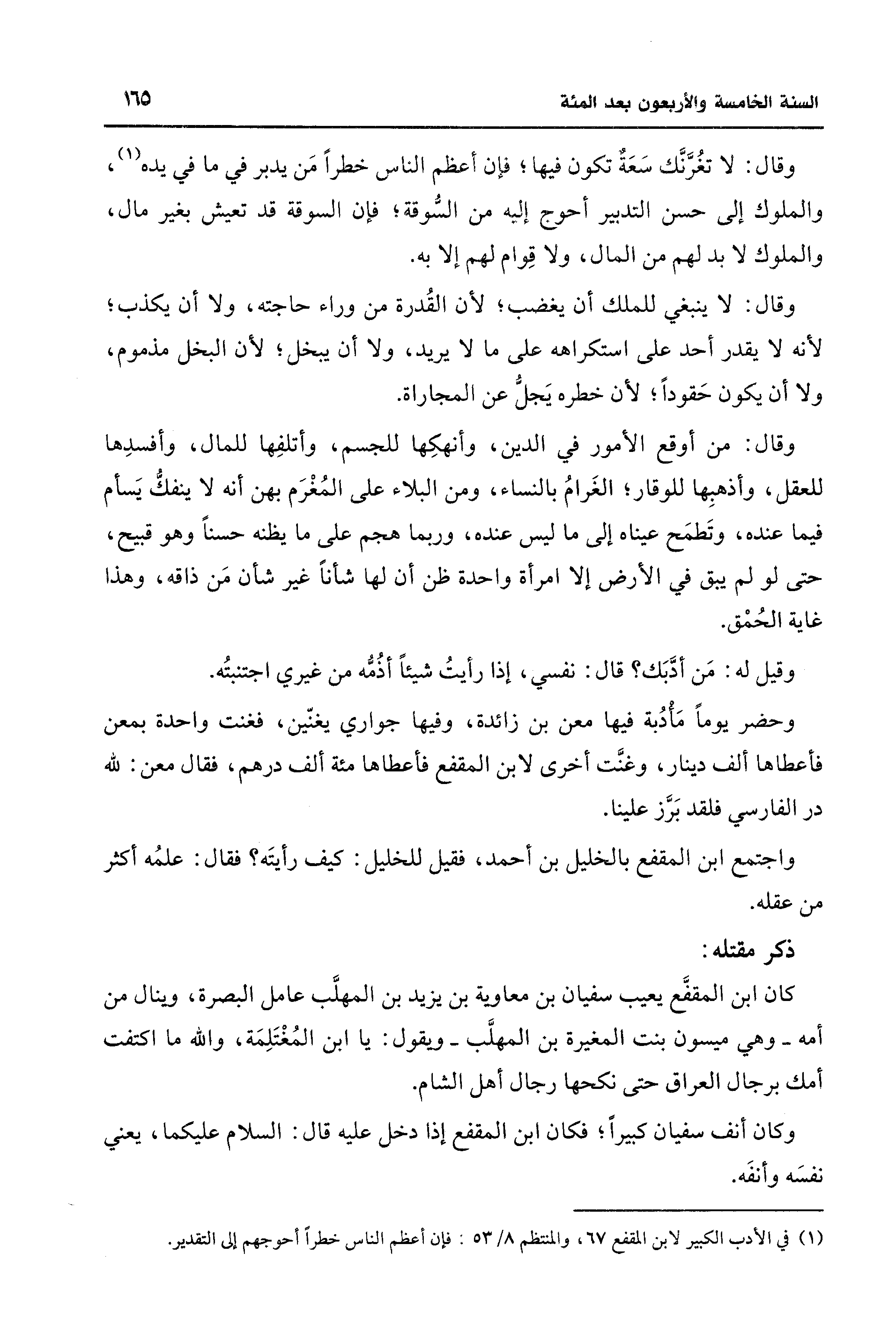 والملوك إلى حسن التدبير أحوج إليه من السُّوقة؛ فإن السوقة قد تعيش بغير مال، والملوك لا بد لهم من المال، ولا قِوام لهم إلا به.