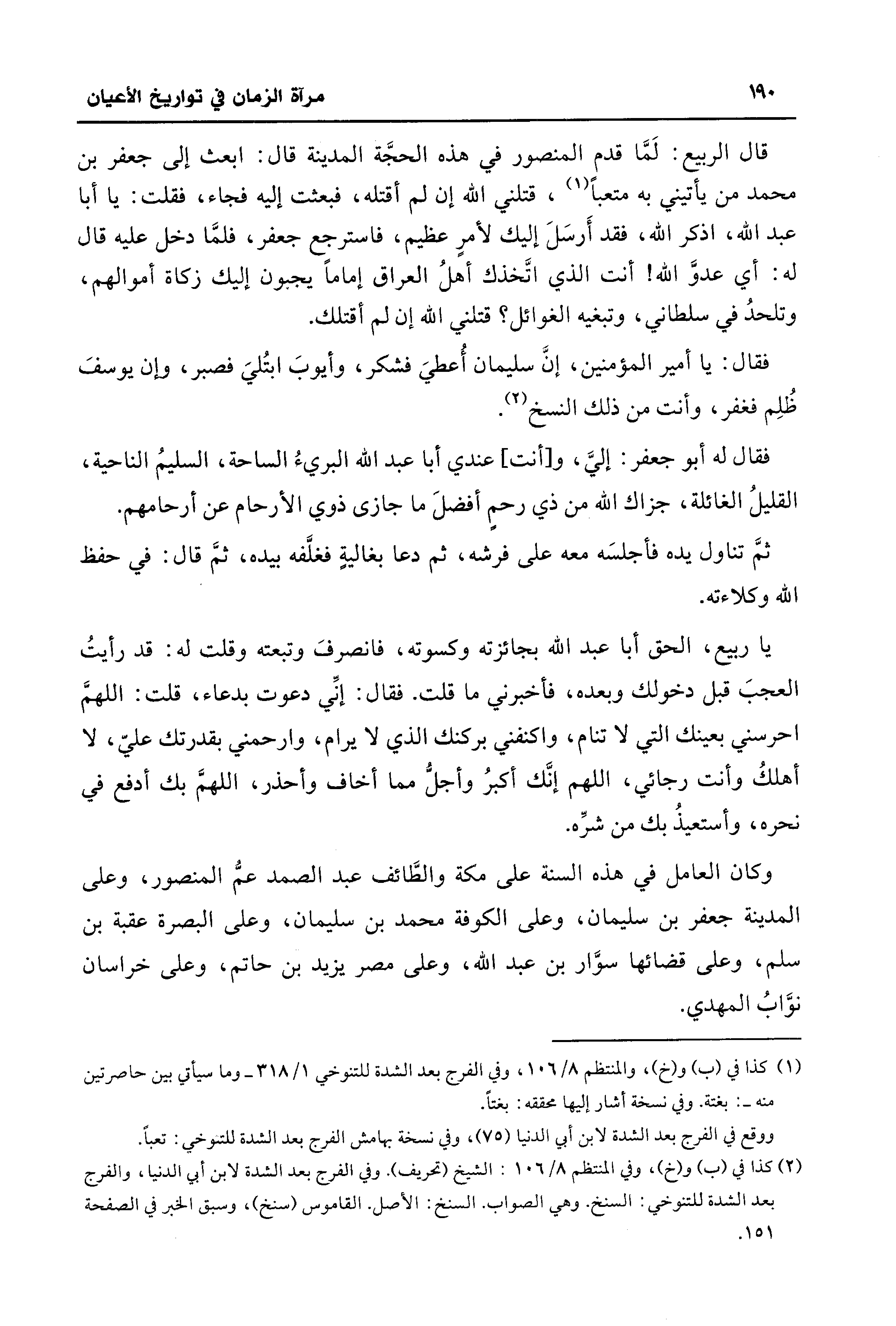 قال الربيع: لَمَّا قدم المنصور في هذه الحجَّة المدينة قال: ابعث إلى جعفر بن محمد من يأتيني به متعبًا (¬1)، قتلني الله إن لم أقتله، فبعثت إليه فجاء، فقلت: يا أبا عبد الله، اذكر الله، فقد أَرسَلَ إليك لأمرٍ عظيم، فاسترجع جعفر، فلمَّا دخل عليه قال له: أي عدوَّ الله! أنت الذي اتَّخذك أهلُ العراق إمامًا يجبون إليك زكاة أموالهم، وتلحدُ في سلطاني، وتبغيه الغوائل؟ قتلني الله إن لم أقتلك.
