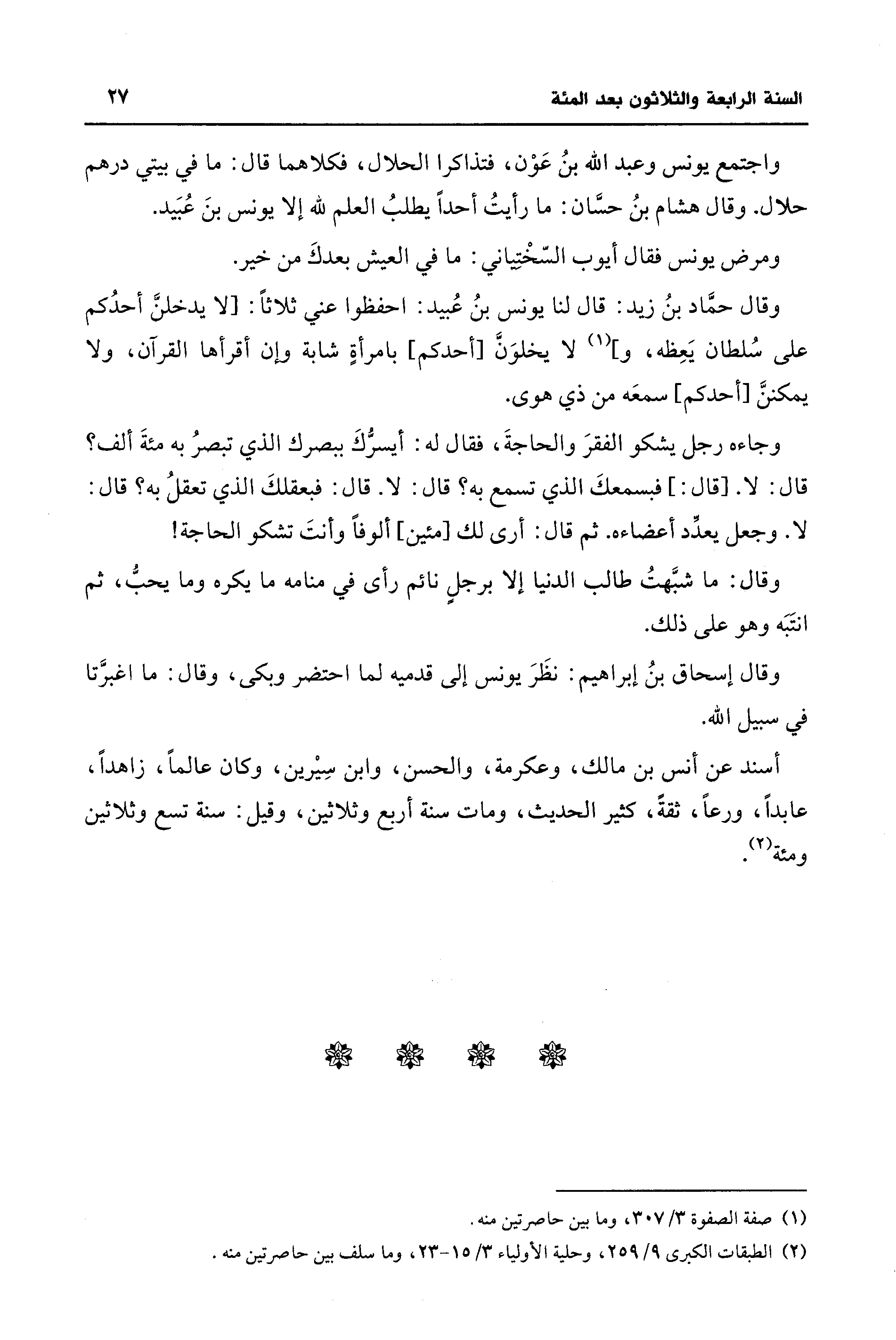 (¬2) الطبقات الكبرى 9/ 259، وحلية الأولياء 3/ 15 - 23، وما سلف بين حاصرتين منه.