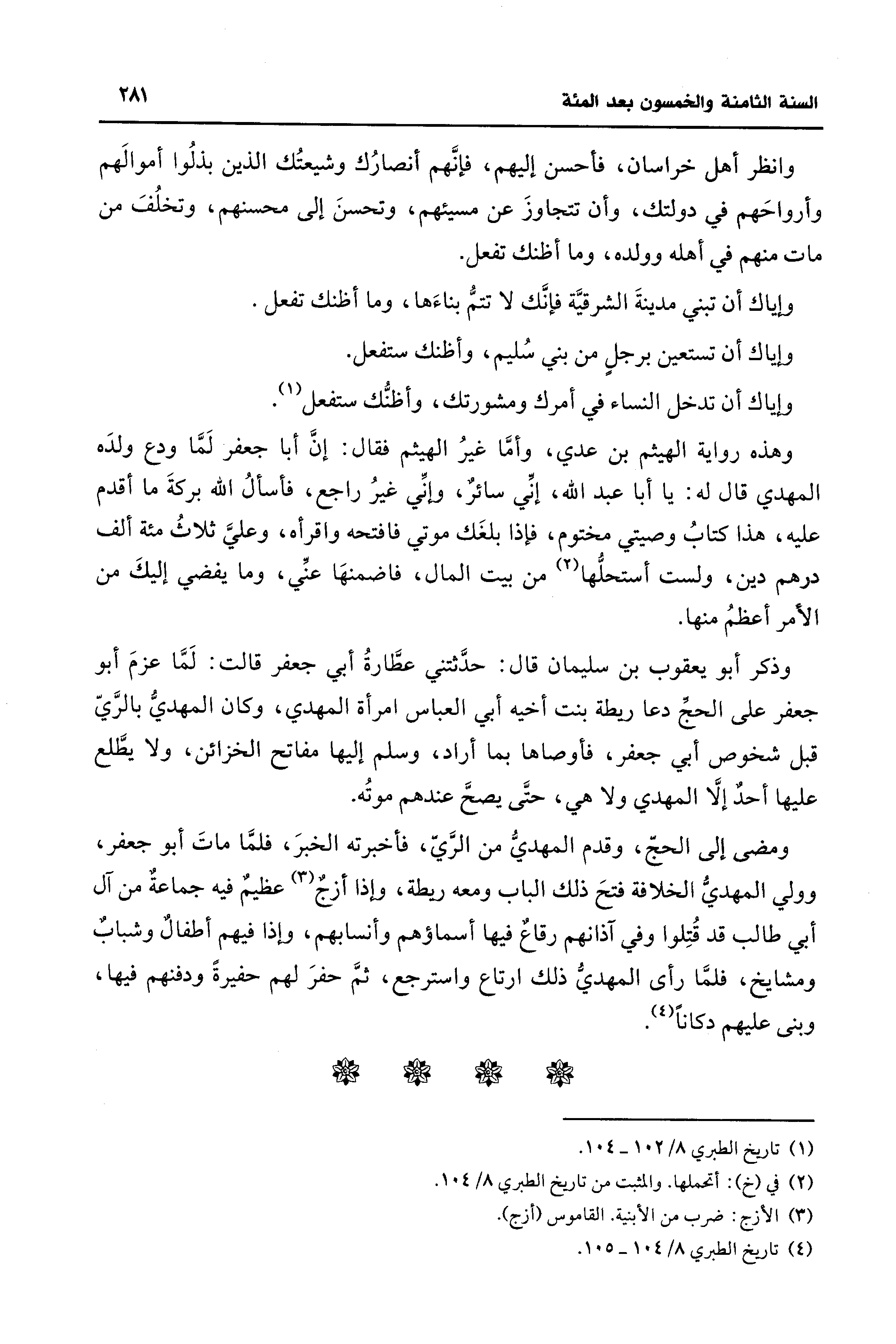 (¬4) تاريخ الطبري 8/ 104 - 105.