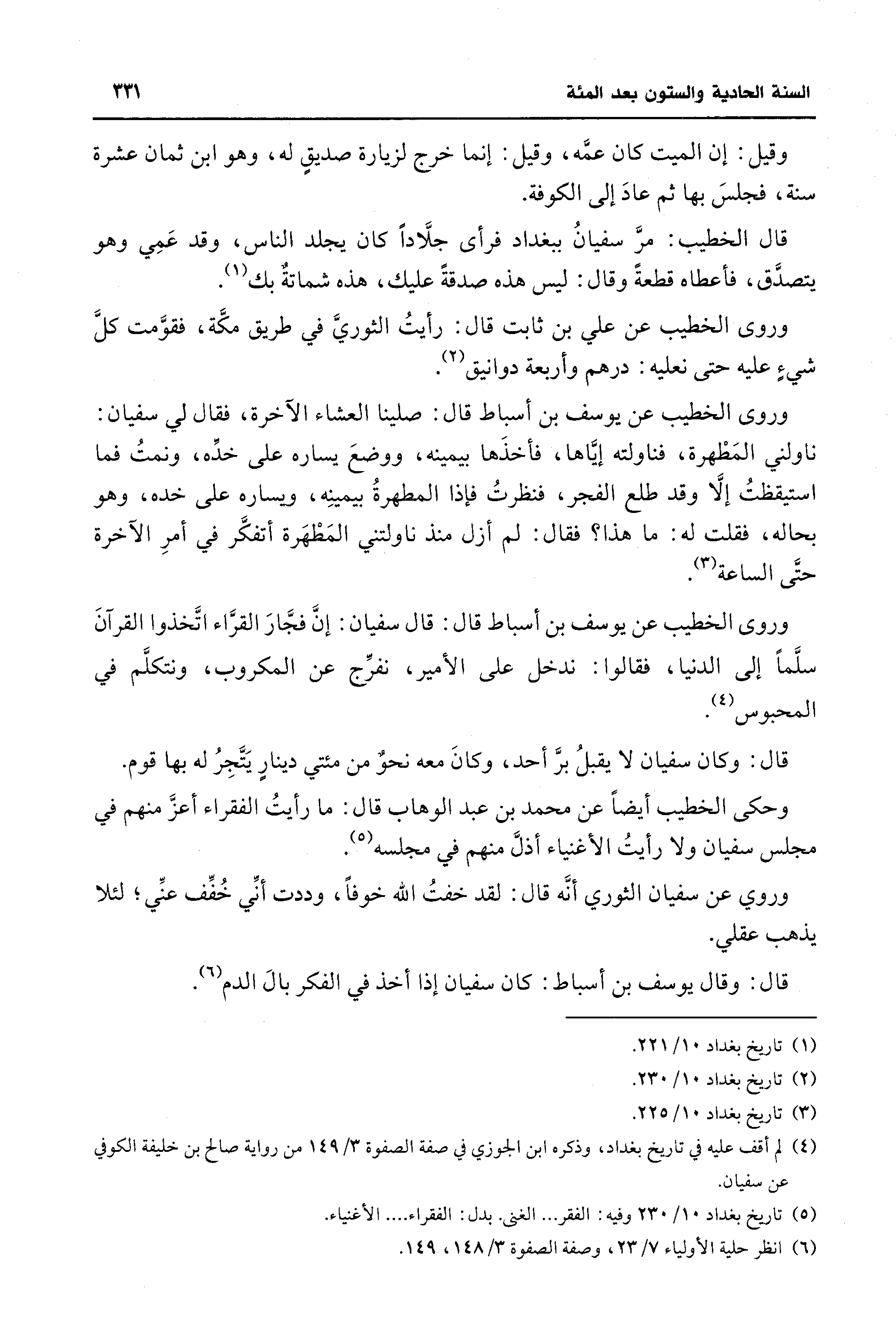 (¬4) لم أقف عليه في تاريخ بغداد، وذكره ابن الجوزي في صفة الصفوة 3/ 149 من رواية صالح بن خليفة الكوفي عن سفيان.