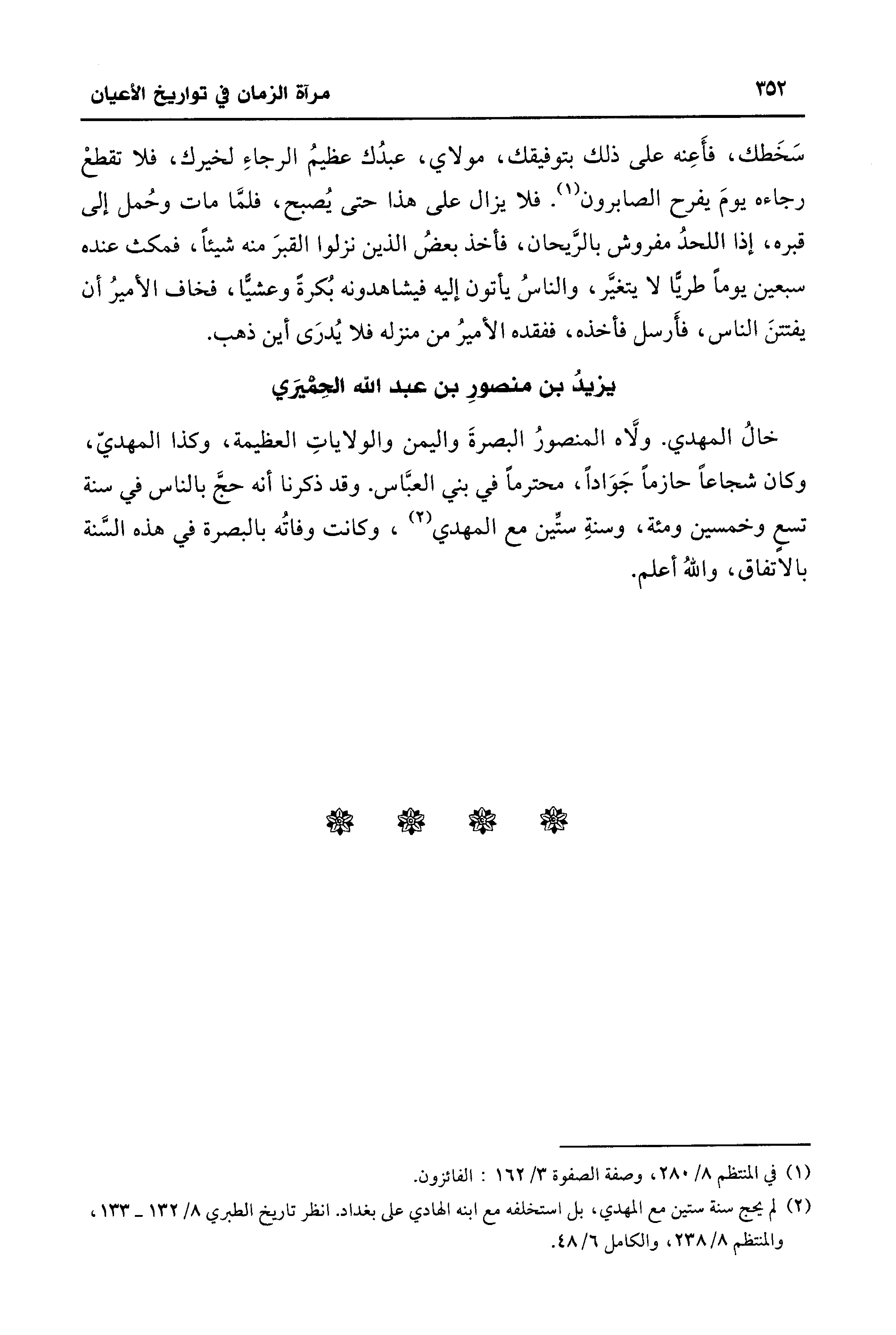 (¬2) لم يحج سنة ستين مع المهدي، بل استخلفه مع ابنه الهادي على بغداد. انظر تاريخ الطبري 8/ 132 - 133، والمنتظم 8/ 238، والكامل 6/ 48.
