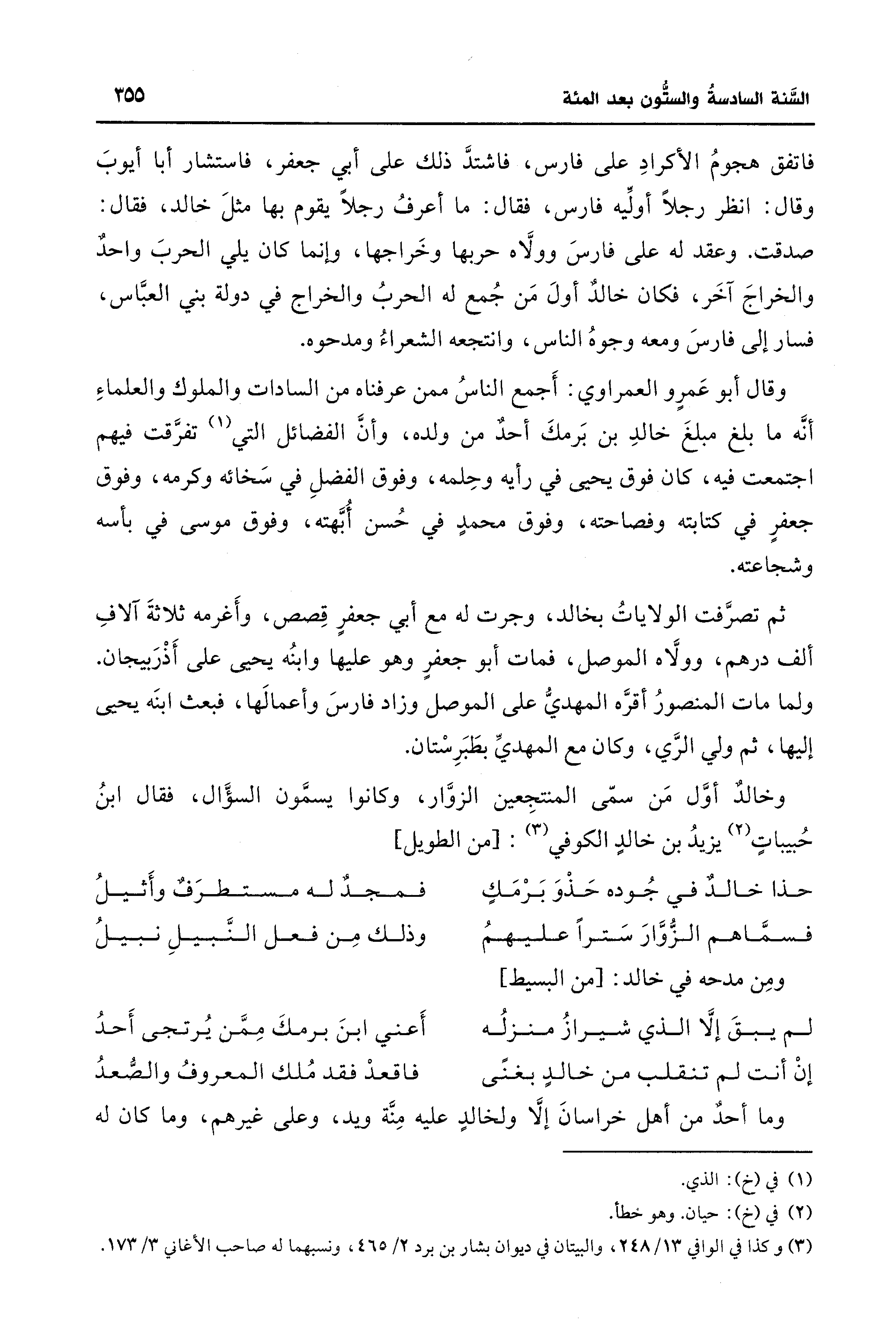 وخالدٌ أوَّل مَن سمّى المنتجِعين الزوَّار، وكانوا يسمَّون السؤَّال، فقال ابنُ حُبيباتٍ (¬2) يزيدُ بن خالدٍ الكُوفيّ (¬3): [من الطويل]