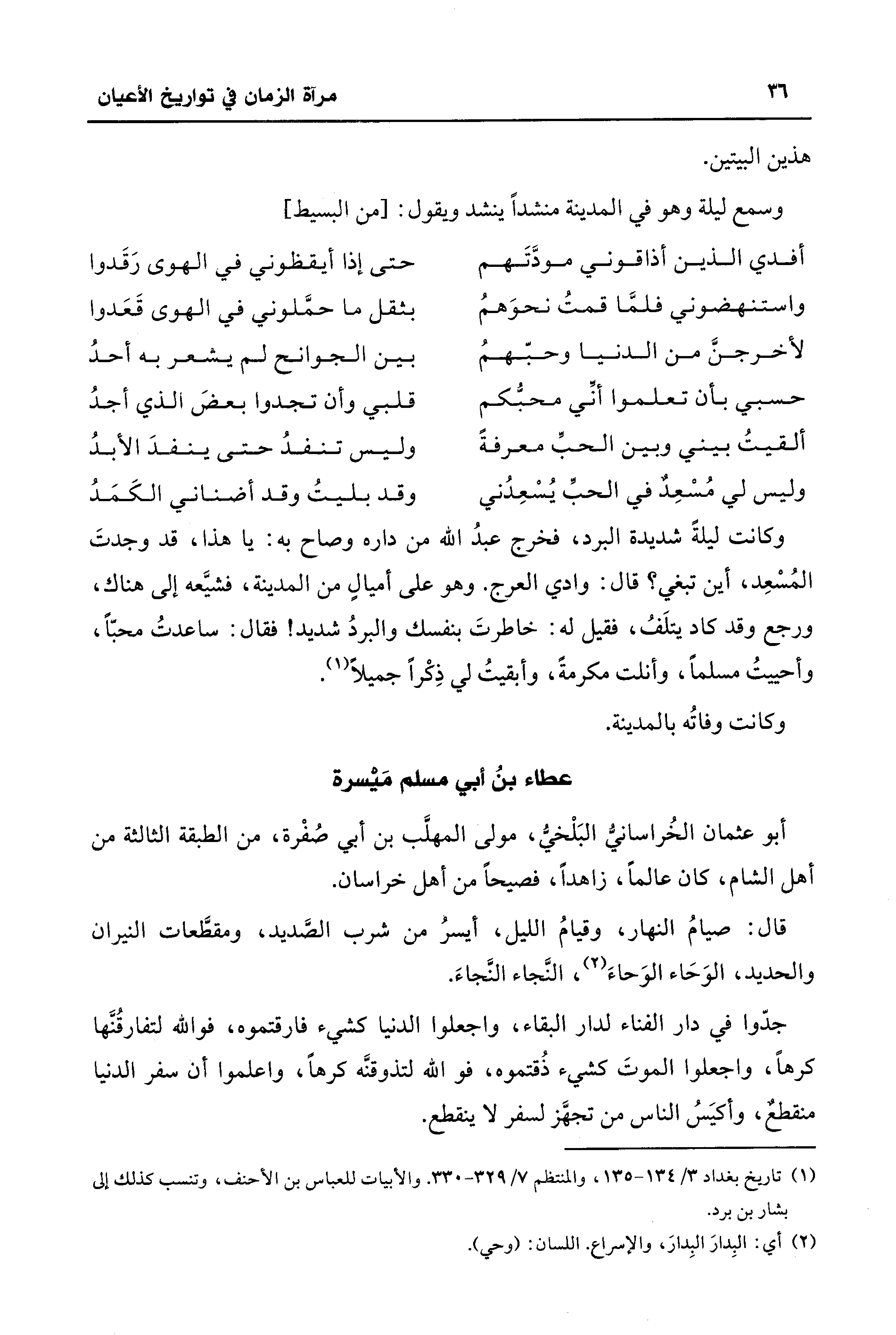 (¬1) تاريخ بغداد 3/ 134 - 135، والمنتظم 7/ 329 - 330. والأبيات للعباس بن الأحنف، وتنسب كذلك إلى بشار بن برد.