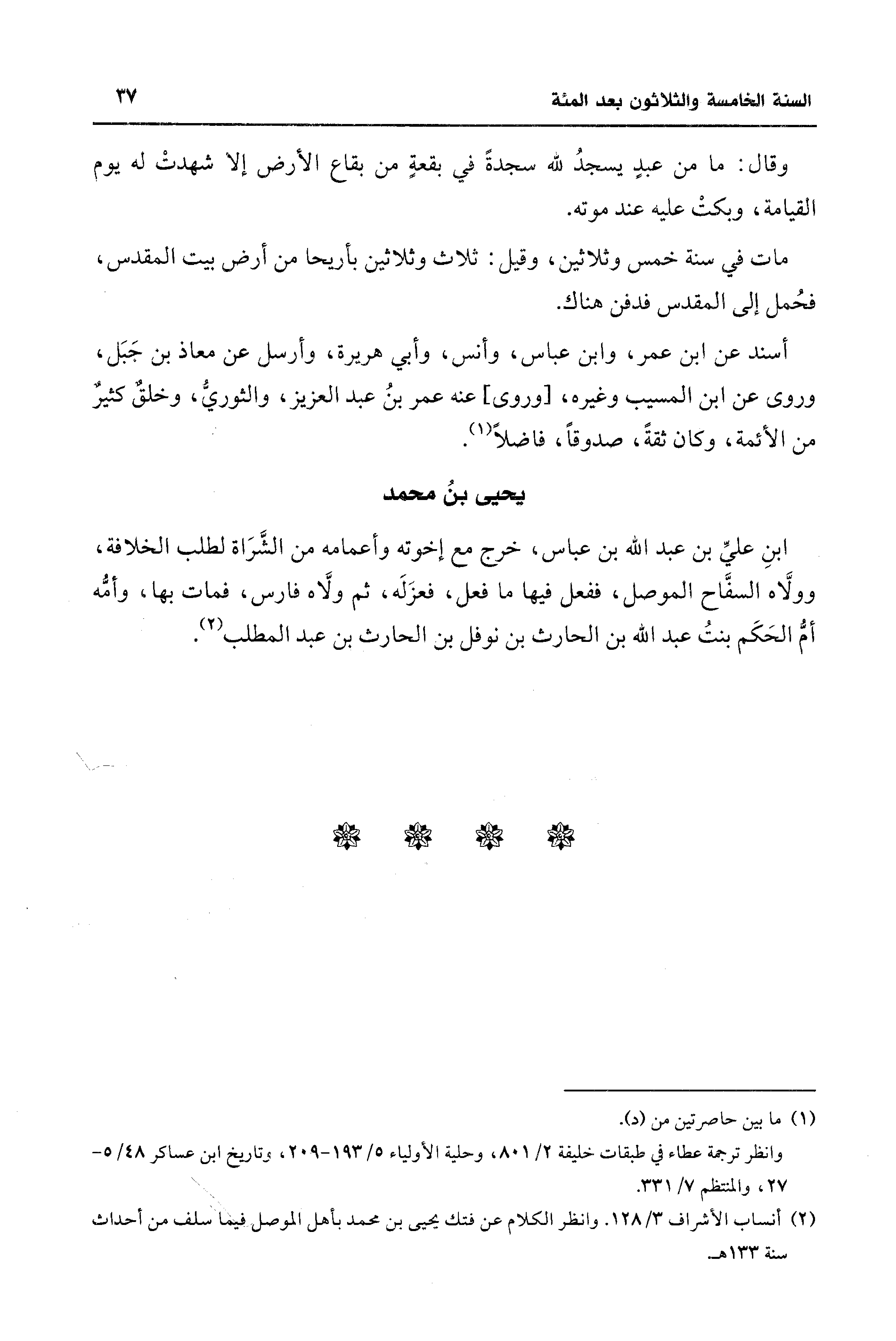 (¬2) أنساب الأشراف 3/ 128. وانظر الكلام عن فتك يحيى بن محمد بأهل الموصل فيما سلف من أحداث سنة 133 هـ.