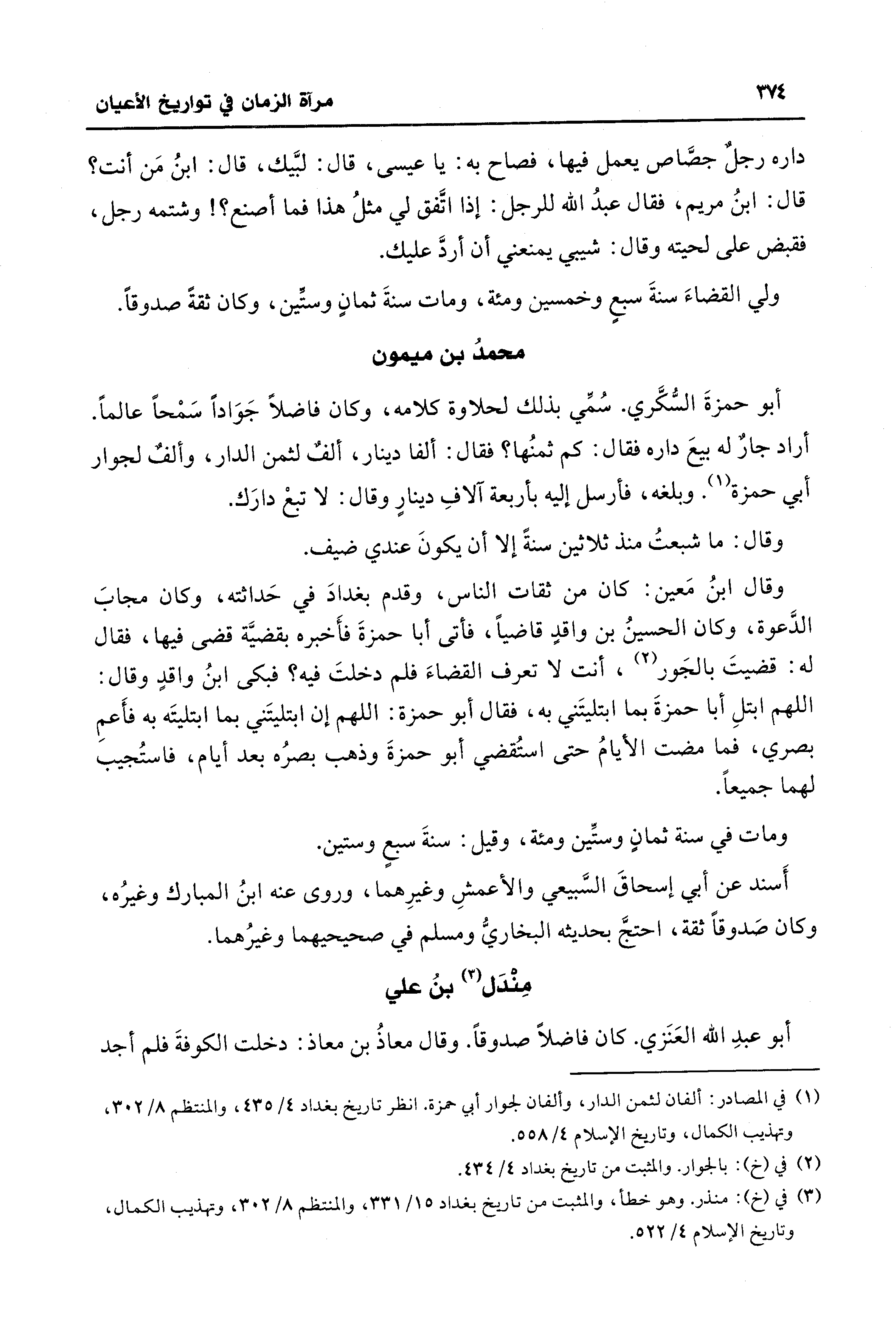 (¬1) في المصادر: ألفان لثمن الدار، وألفان لجوار أبي حمزة. انظر تاريخ بغداد 4/ 435، والمنتظم 8/ 302، وتهذيب الكمال، وتاريخ الإِسلام 4/ 558.