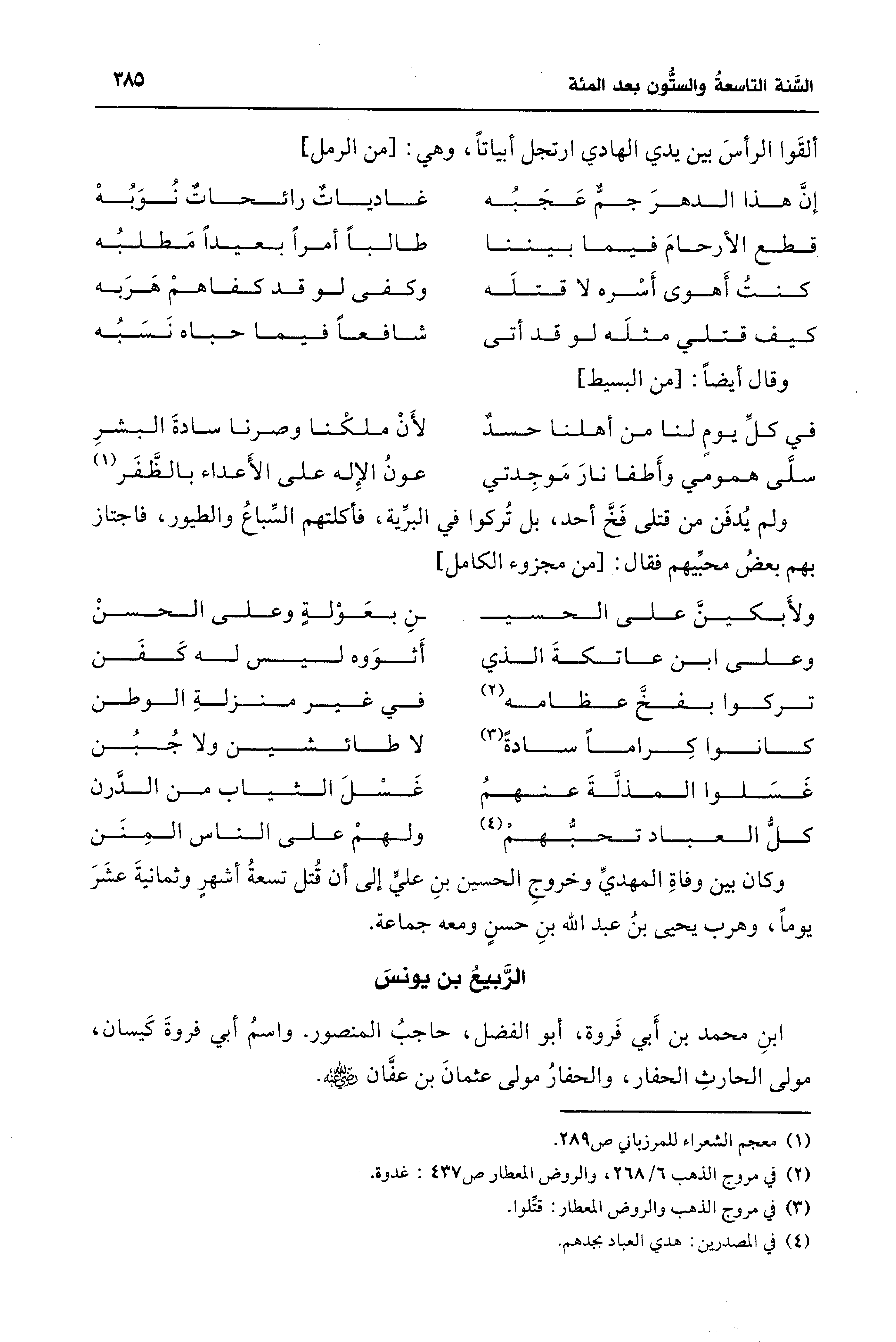 ألقَوا الرأسَ بين يدي الهادي ارتجل أبياتًا، وهي: [من الرمل]