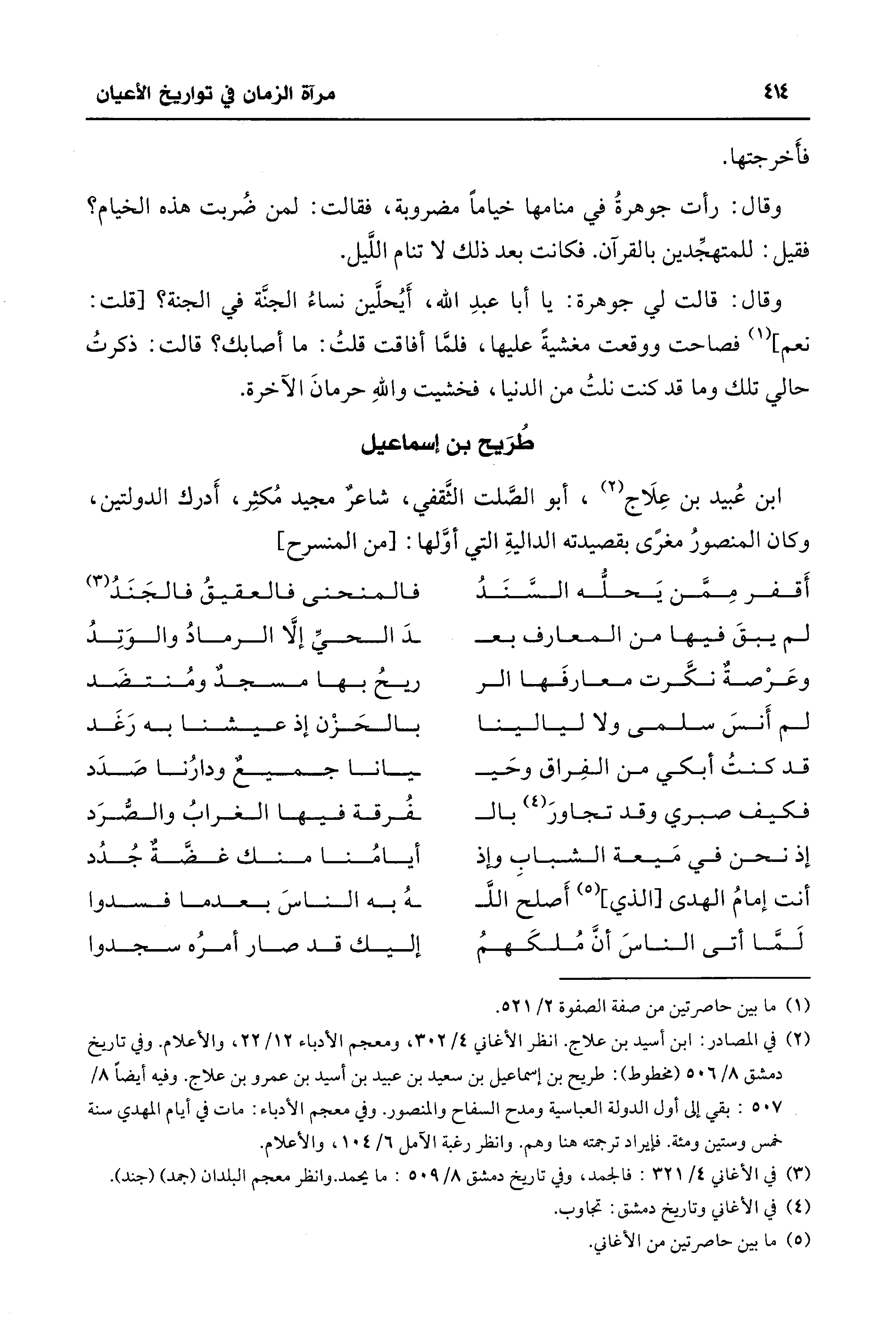 (¬2) في المصادر: ابن أسيد بن علاج. انظر الأغاني 4/ 302، ومعجم الأدباء 12/ 22، والأعلام. وفي تاريخ دمشق 8/ 506 (مخطوط): طريح بن إسماعيل بن سعيد بن عبيد بن أسيد بن عمرو بن علاج. وفيه أيضًا 8/ 507: بقي إلى أول الدولة العباسية ومدح السفاح والمنصور. وفي معجم الأدباء: مات في أيام المهدي سنة خمس وستين ومئة. فإيراد ترجمته هنا وهم. وانظر رغبة الآمل 6/ 104، والأعلام.