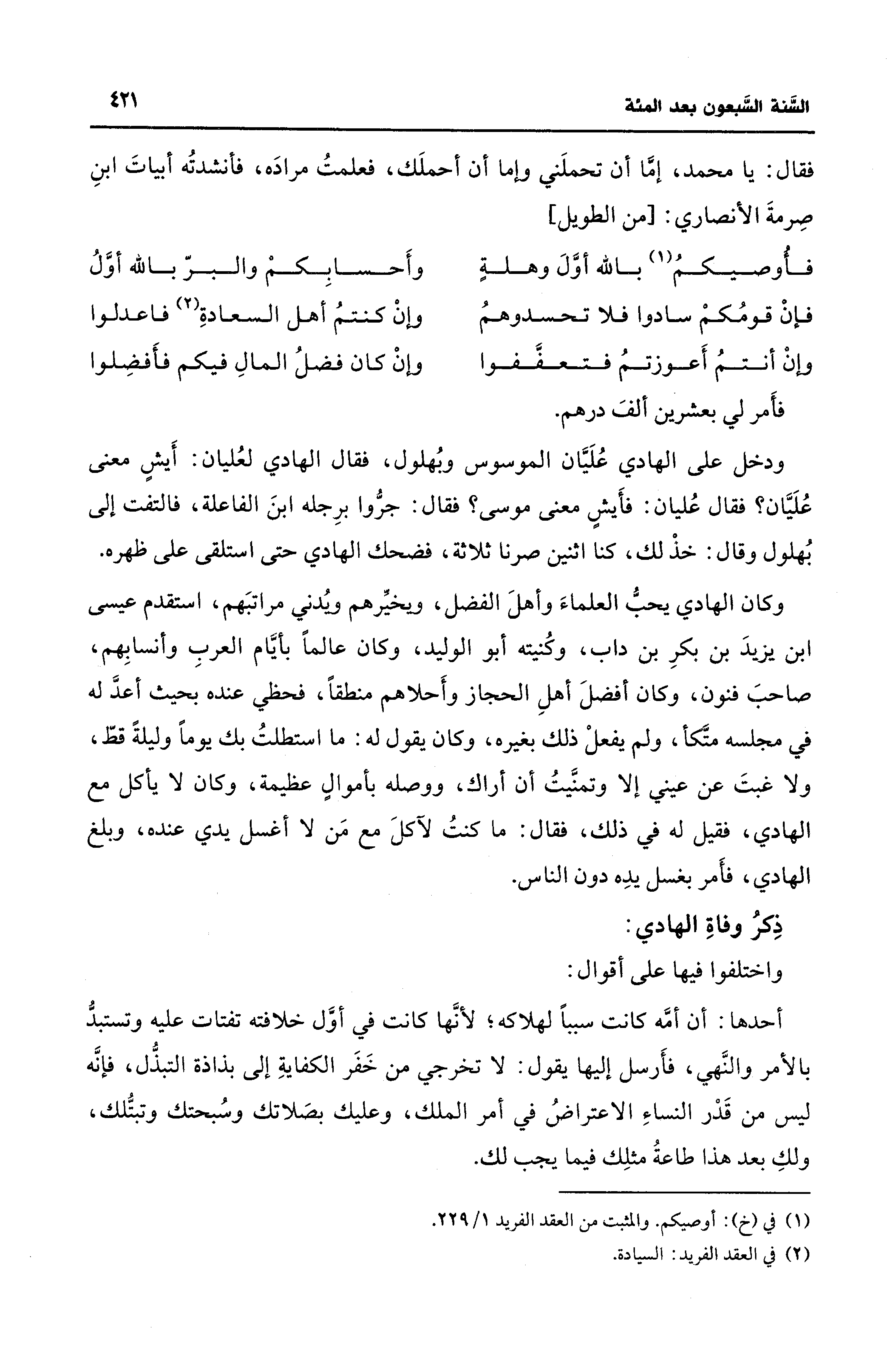 فإنْ قومُكمْ سادوا فلا تحسدوهمُ ... وإنْ كنتمُ أهل السعادةِ (¬2) فاعدلوا