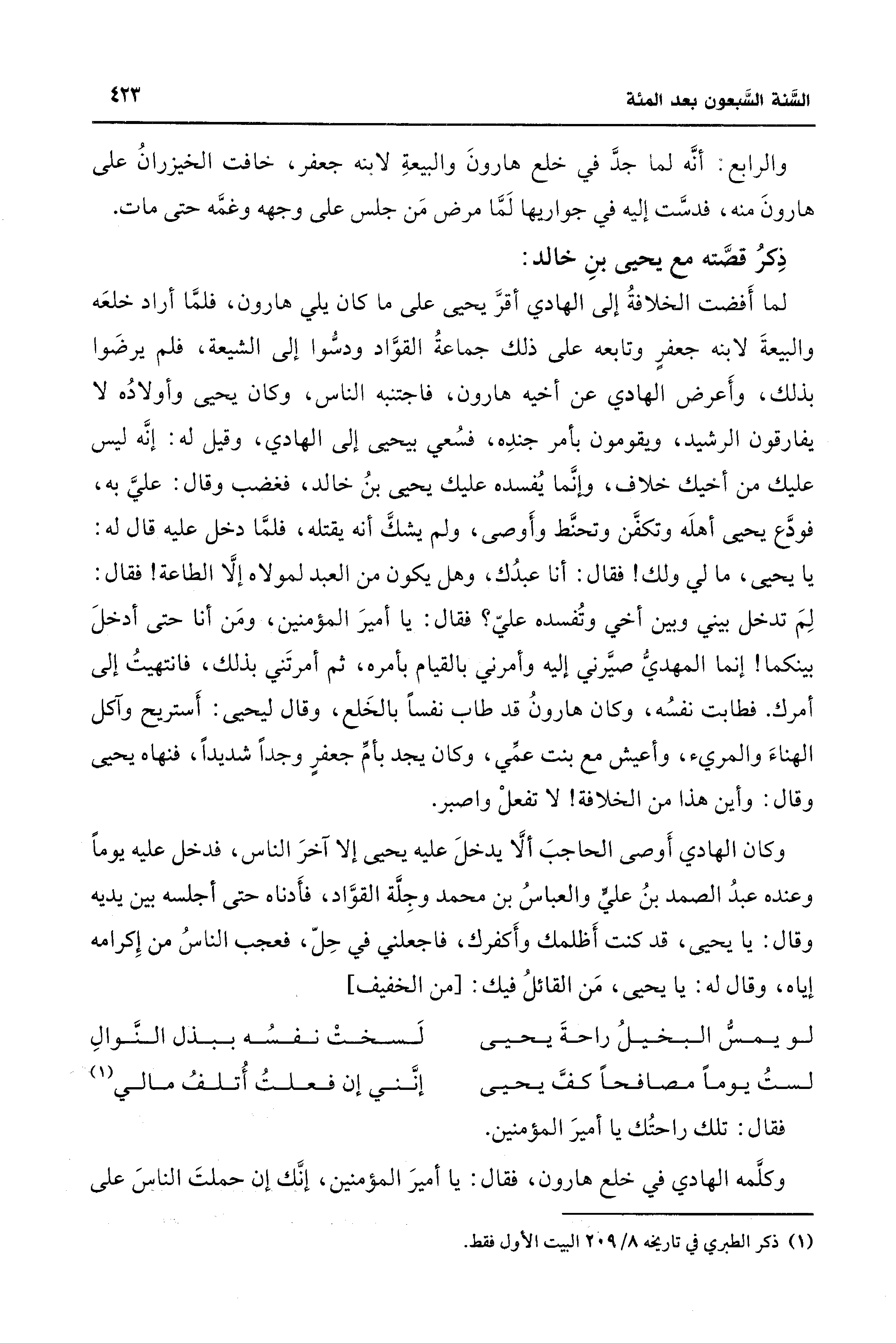 ذِكرُ قصَّته مع يحيى بنِ خالد: