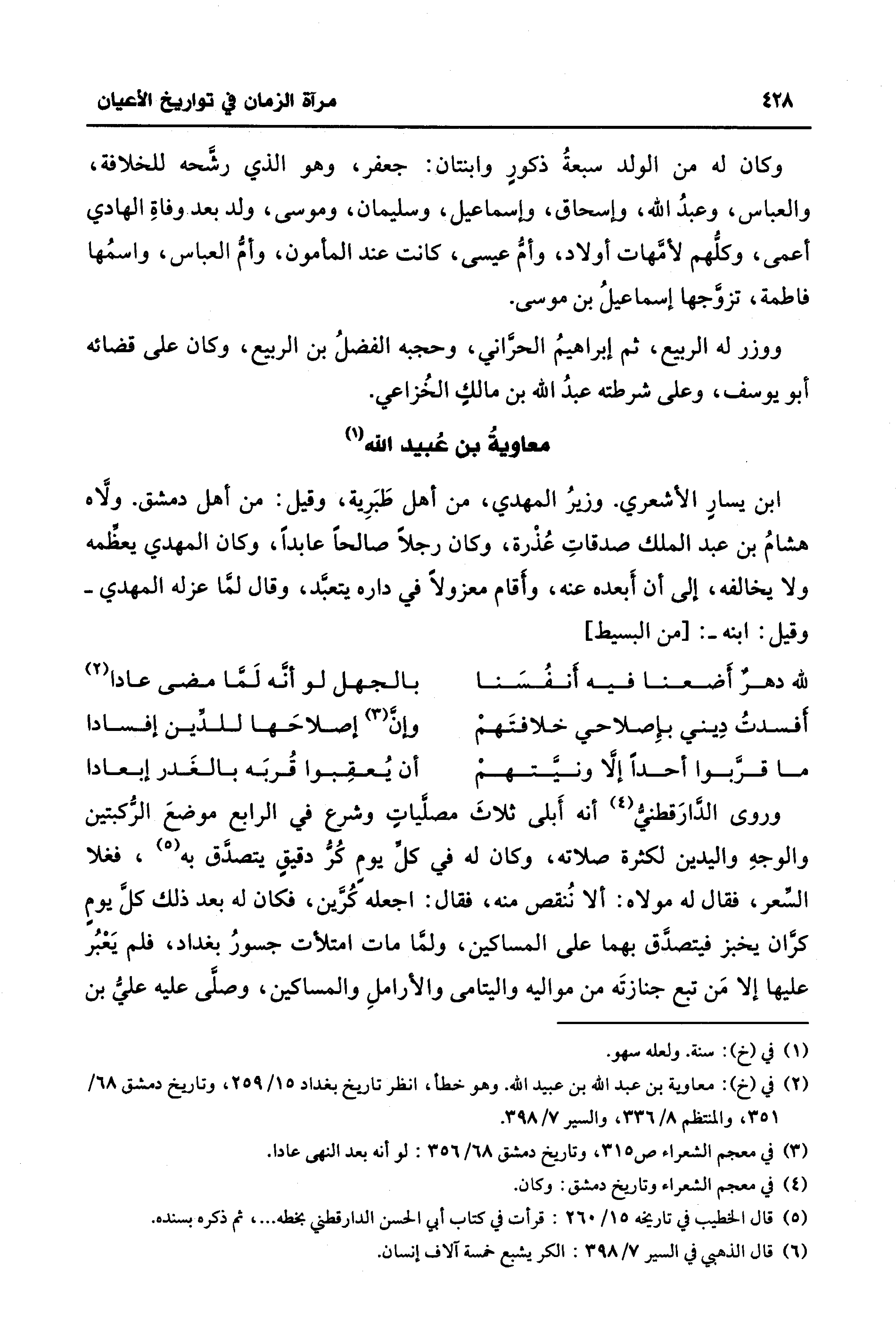 (¬1) في (خ): معاوية بن عبد الله بن عبيد الله. وهو خطأ، انظر تاريخ بغداد 15/ 259، وتاريخ دمشق 68/ 351، والمنتظم 8/ 336، والسير 7/ 398.