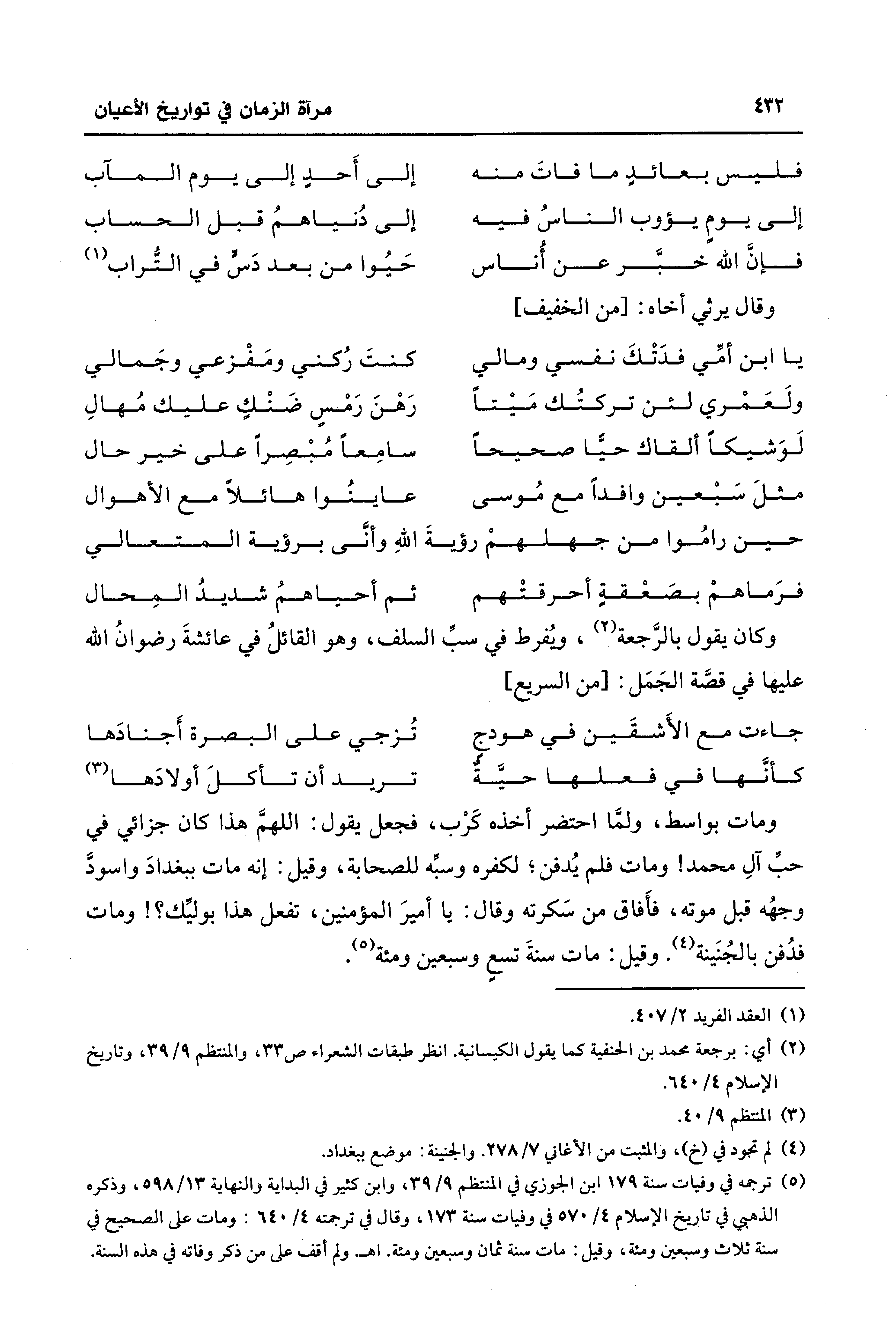 (¬5) ترجمه في وفيات سنة 179 ابن الجوزي في المنتظم 9/ 39، وابن كثير في البداية والنهاية 13/ 598، وذكره الذهبي في تاريخ الإسلام 4/ 570 في وفيات سنة 173، وقال في ترجمته 4/ 640: ومات على الصحيح في سنة ثلاث وسبعين ومئة، وقيل: مات سنة ثمان وسبعين ومئة. اهـ. ولم أقف على من ذكر وفاته في هذه السنة.