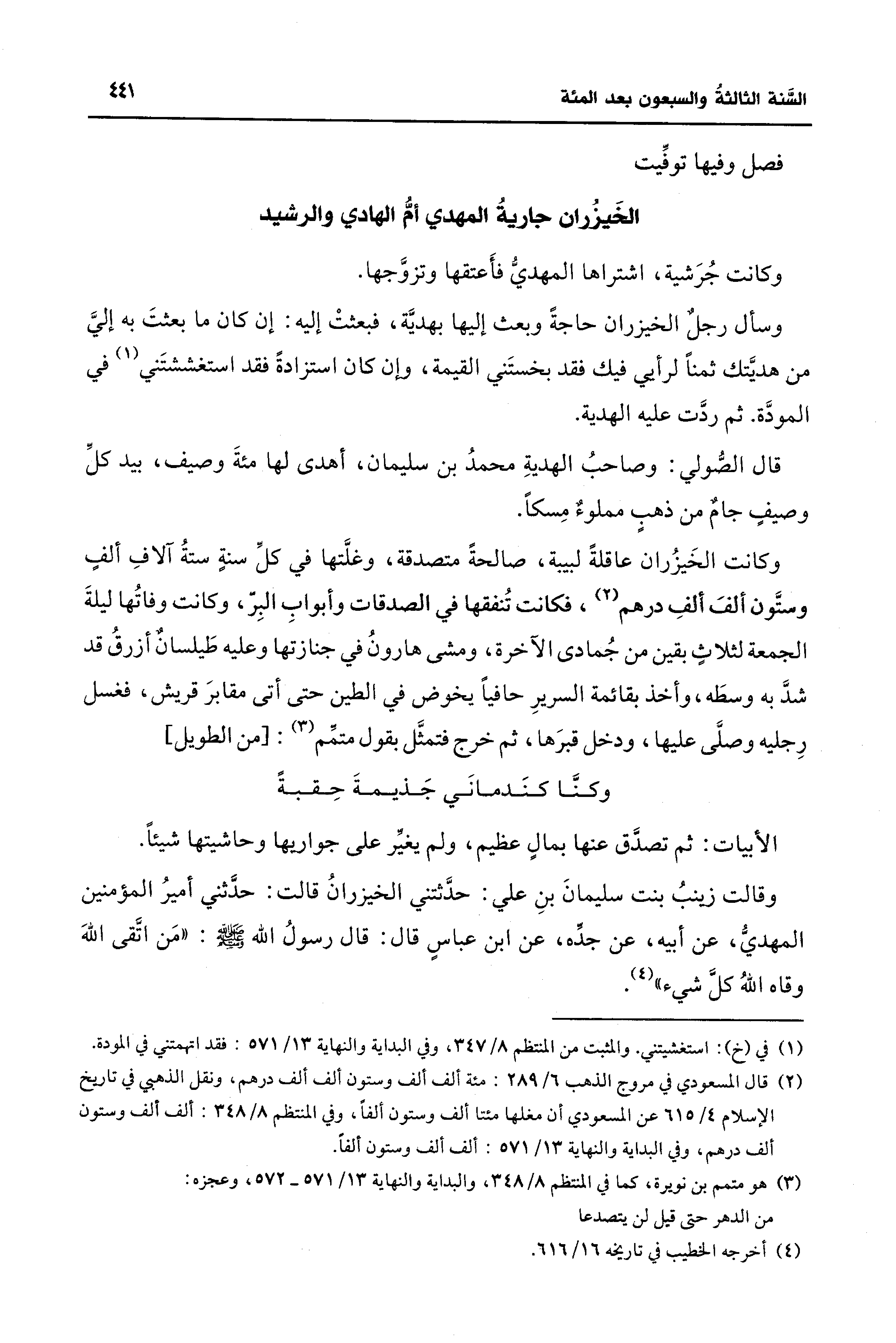 (¬2) قال المسعودي في مروج الذهب 6/ 289: مئة ألف ألف وستون ألف ألف درهم، ونقل الذهبي في تاريخ الإسلام 4/ 615 عن المسعودي أن مغلها مئتا ألف وستون ألفًا، وفي المنتظم 8/ 348: ألف ألف وستون ألف درهم، وفي البداية والنهاية 13/ 571: ألف ألف وستون ألفًا.