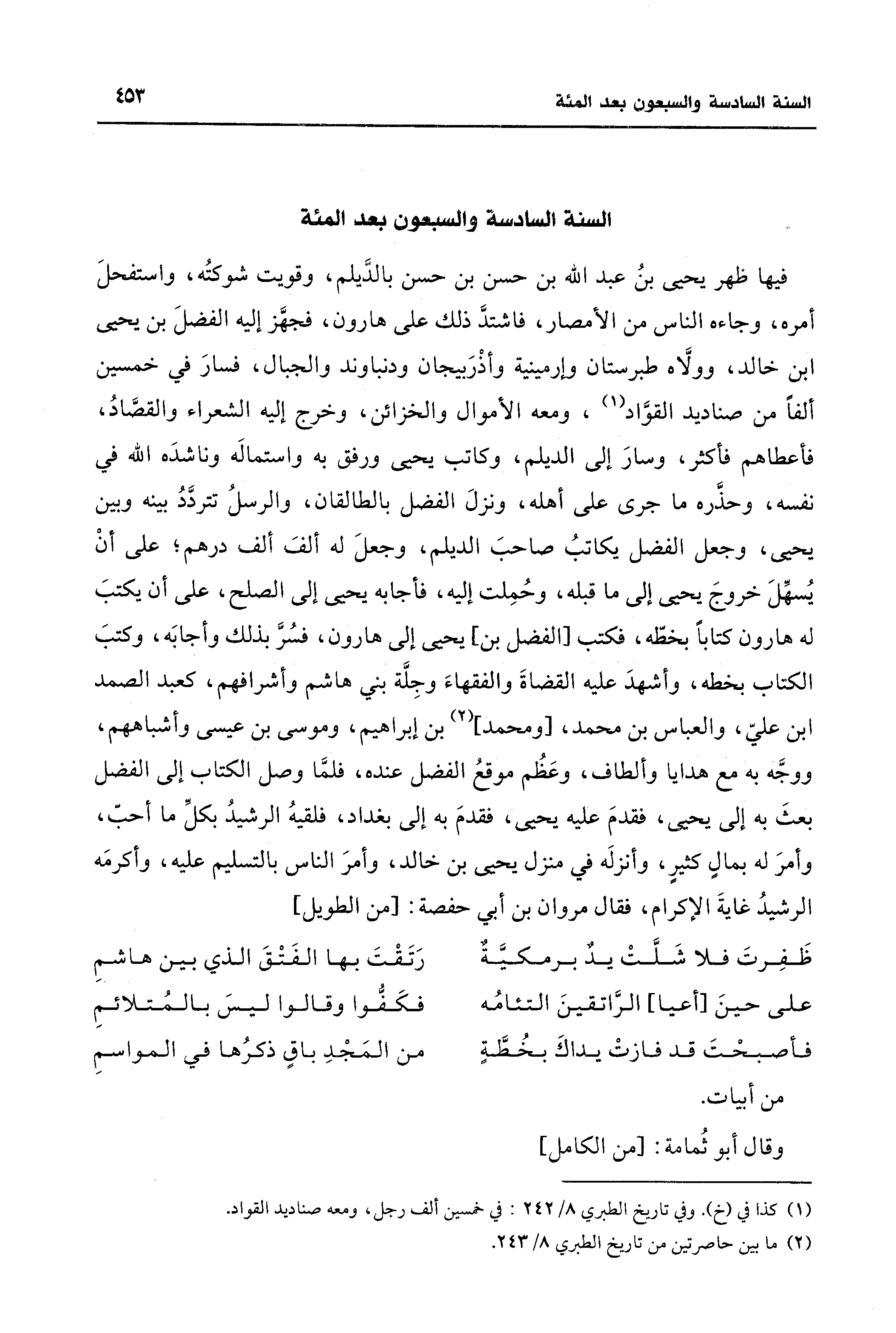 (¬2) ما بين حاصرتين من تاريخ الطبري 8/ 243.