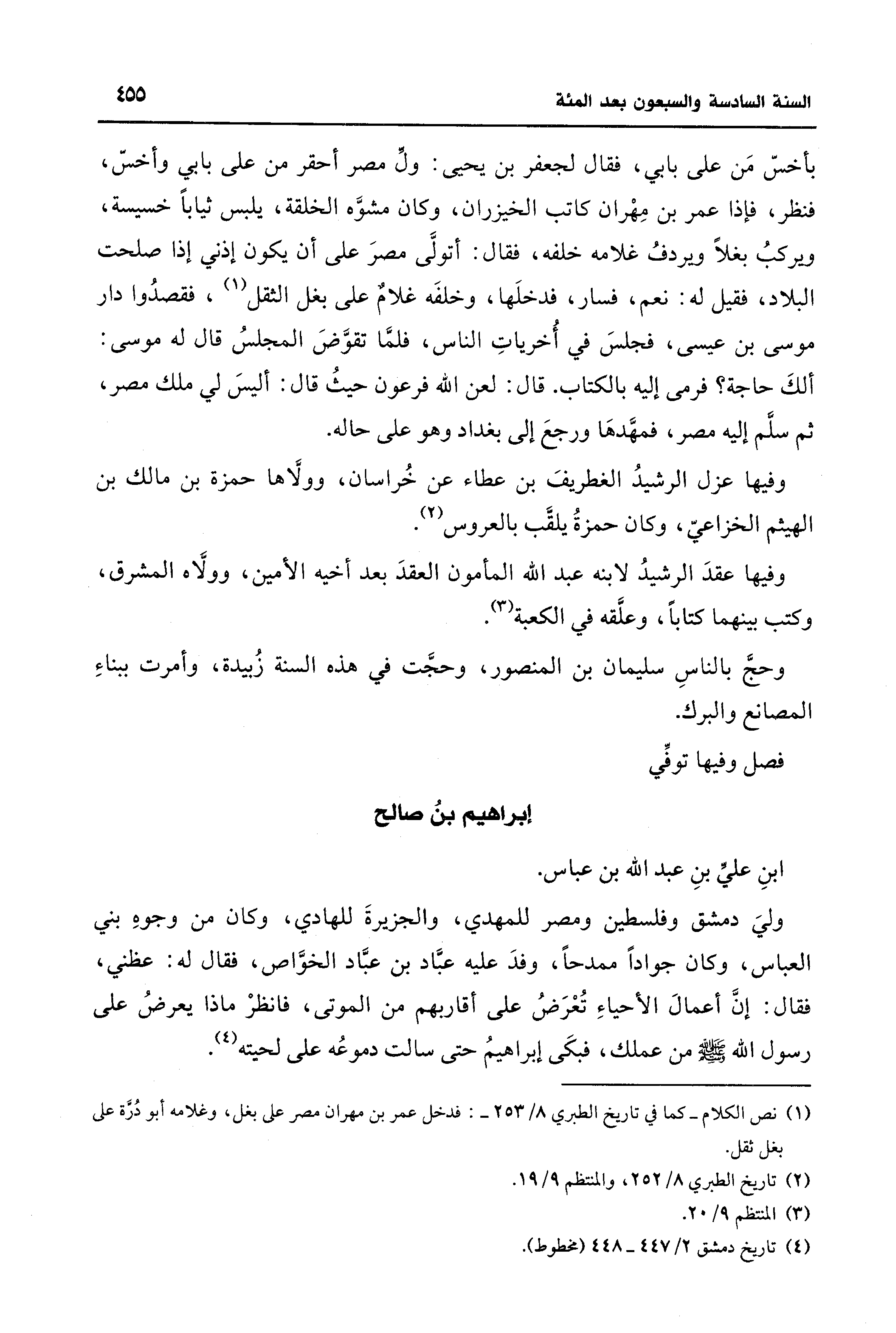 (¬2) تاريخ الطبري 8/ 252، والمنتظم 9/ 19.