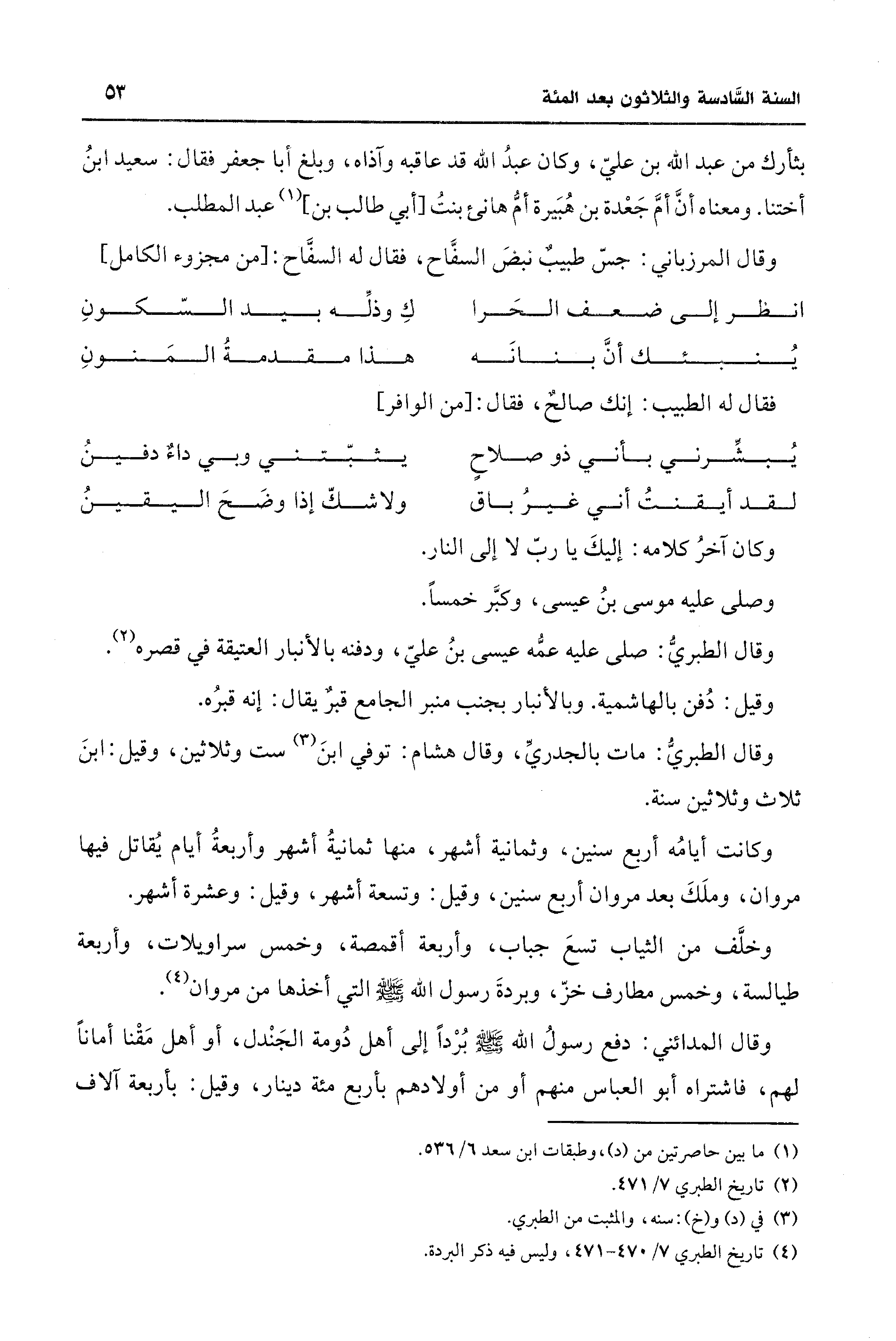 (¬4) تاريخ الطبري 7/ 470 - 471، وليس فيه ذكر البردة.