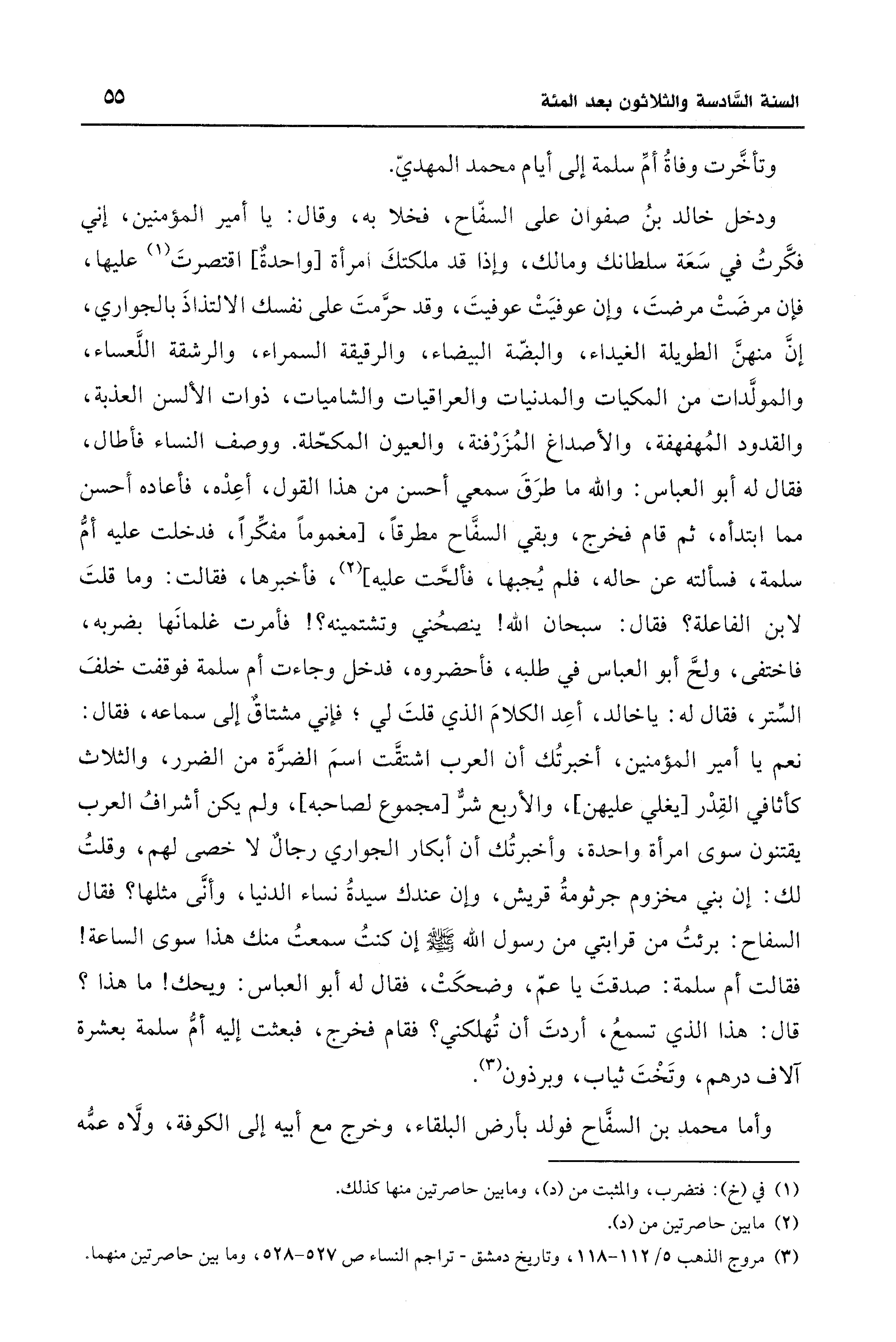(¬3) مروج الذهب 5/ 112 - 118، وتاريخ دمشق - تراجم النساء ص 527 - 528، وما بين حاصرتين منهما.