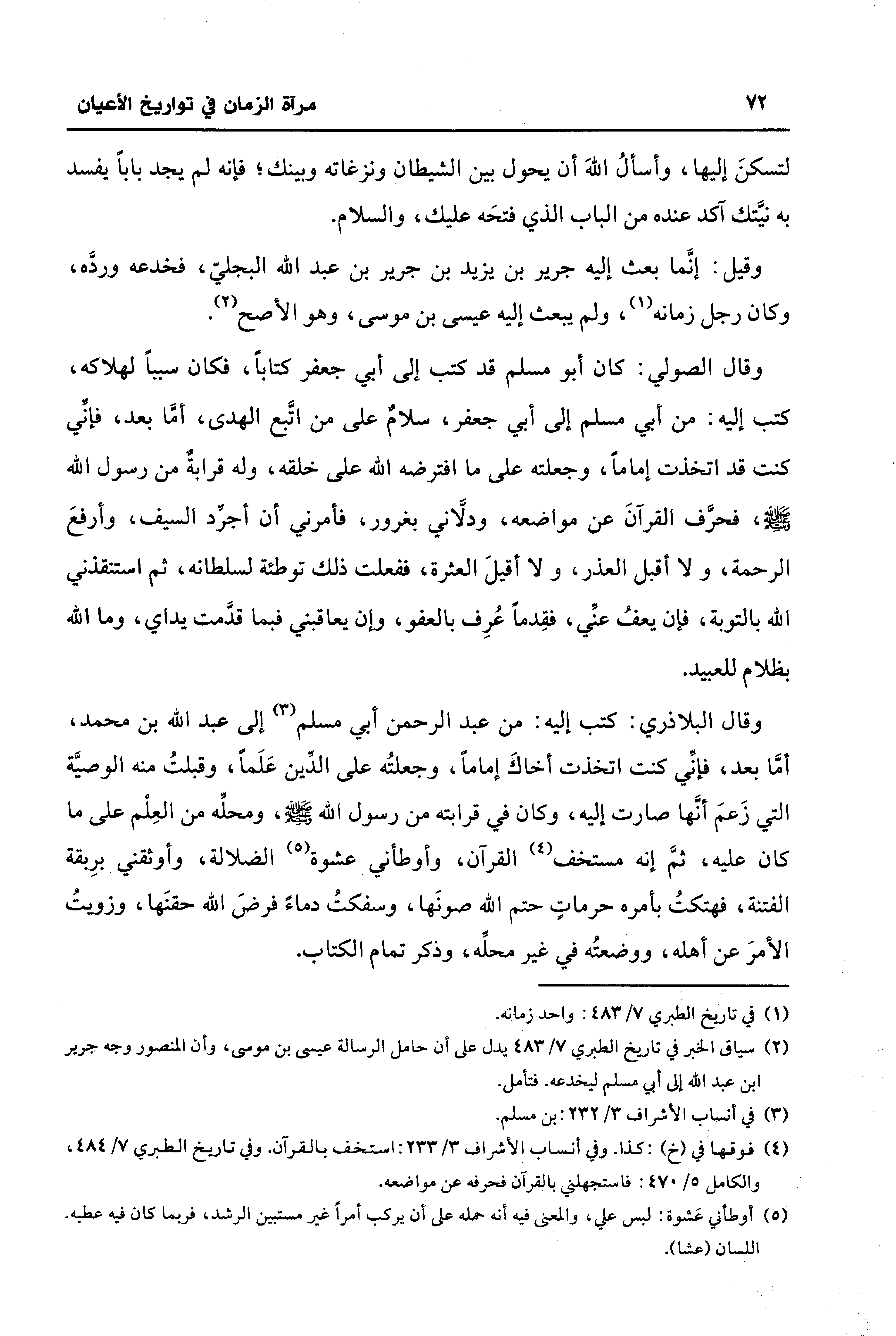 (¬2) سياق الخبر في تاريخ الطبري 7/ 483 يدل على أن حامل الرسالة عيسى بن موسى، وأن المنصور وجه جرير بن عبد الله إلى أبي مسلم ليخدعه. فتأمل.
