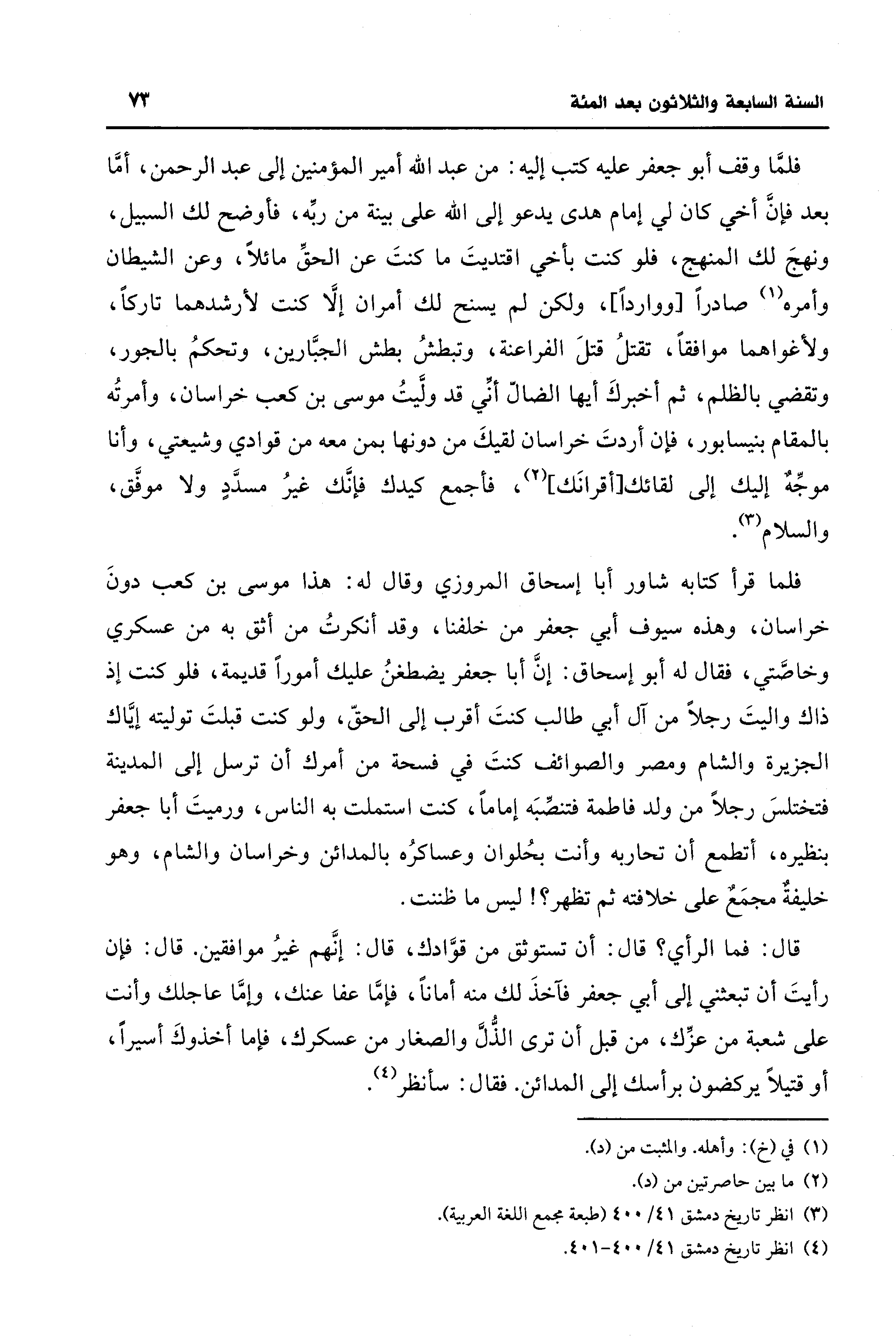 (¬4) انظر تاريخ دمشق 41/ 400 - 401.