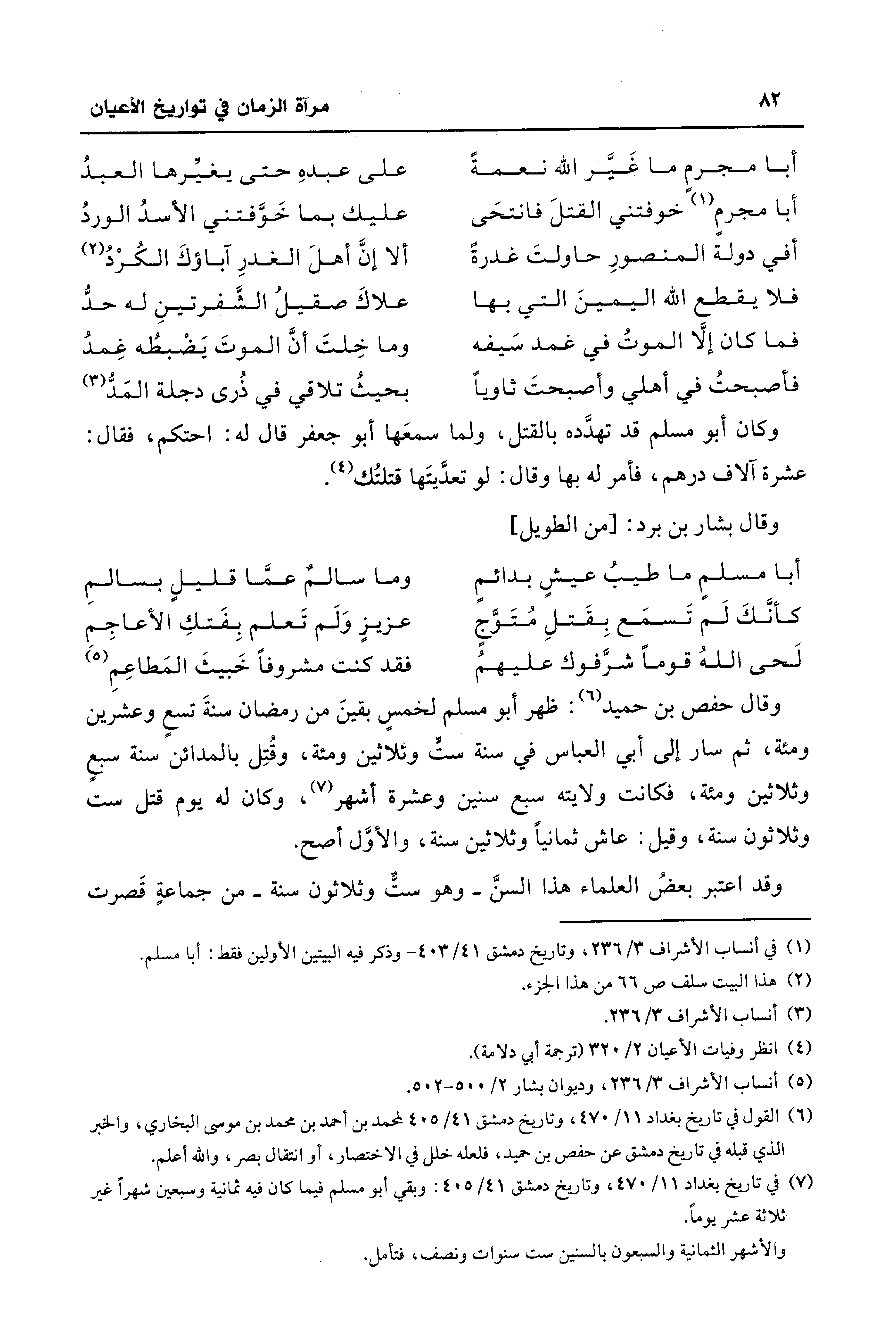 (¬1) في أنساب الأشراف 3/ 236، وتاريخ دمشق 41/ 403 - وذكر فيه البيتين الأولين فقط: أبا مسلم.