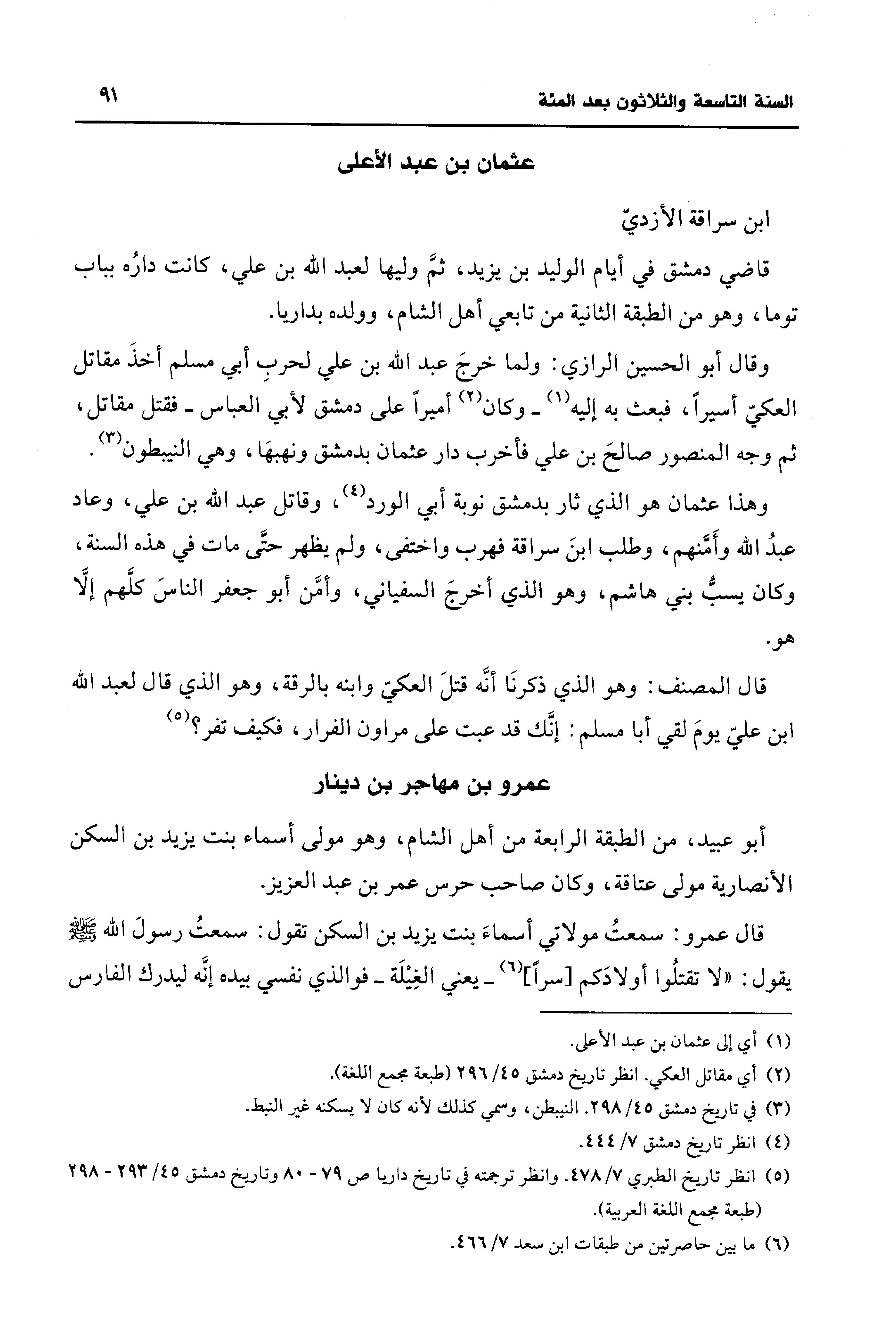 (¬5) انظر تاريخ الطبري 7/ 478. وانظر ترجمته في تاريخ داريا ص 79 - 80 وتاريخ دمشق 45/ 293 - 298 (طبعة مجمع اللغة العربية).