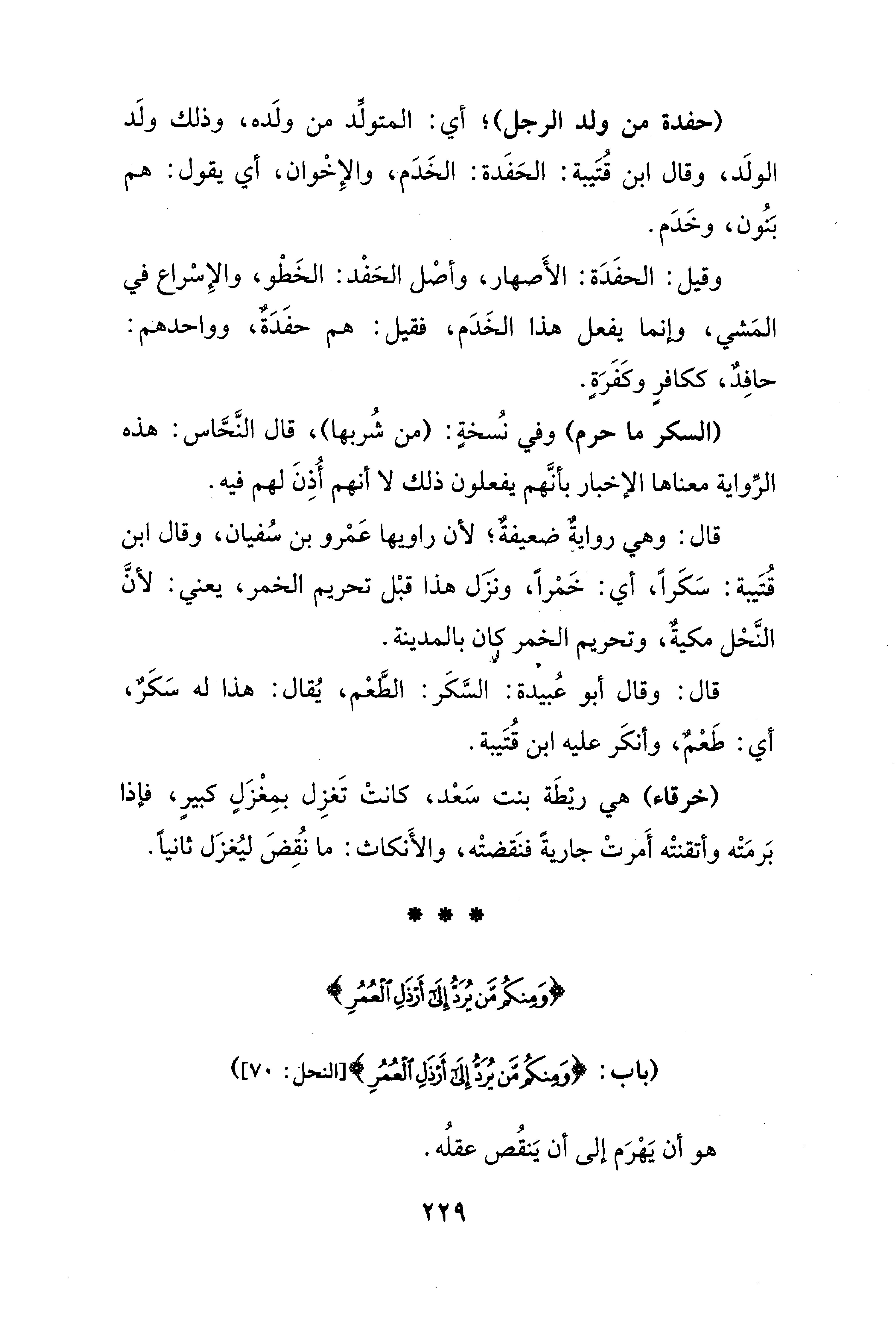 قال: وهي روايةٌ ضعيفةٌ؛ لأن راويها عَمرو بن سُفيان، وقال ابن قُتَيبة: سَكَرًا، أي: خَمرًا، ونزَل هذا قبْل تحريم الخمر، يعني: لأنَّ النَّخل مكيةٌ، وتحريم الخمر كان بالمدينة.