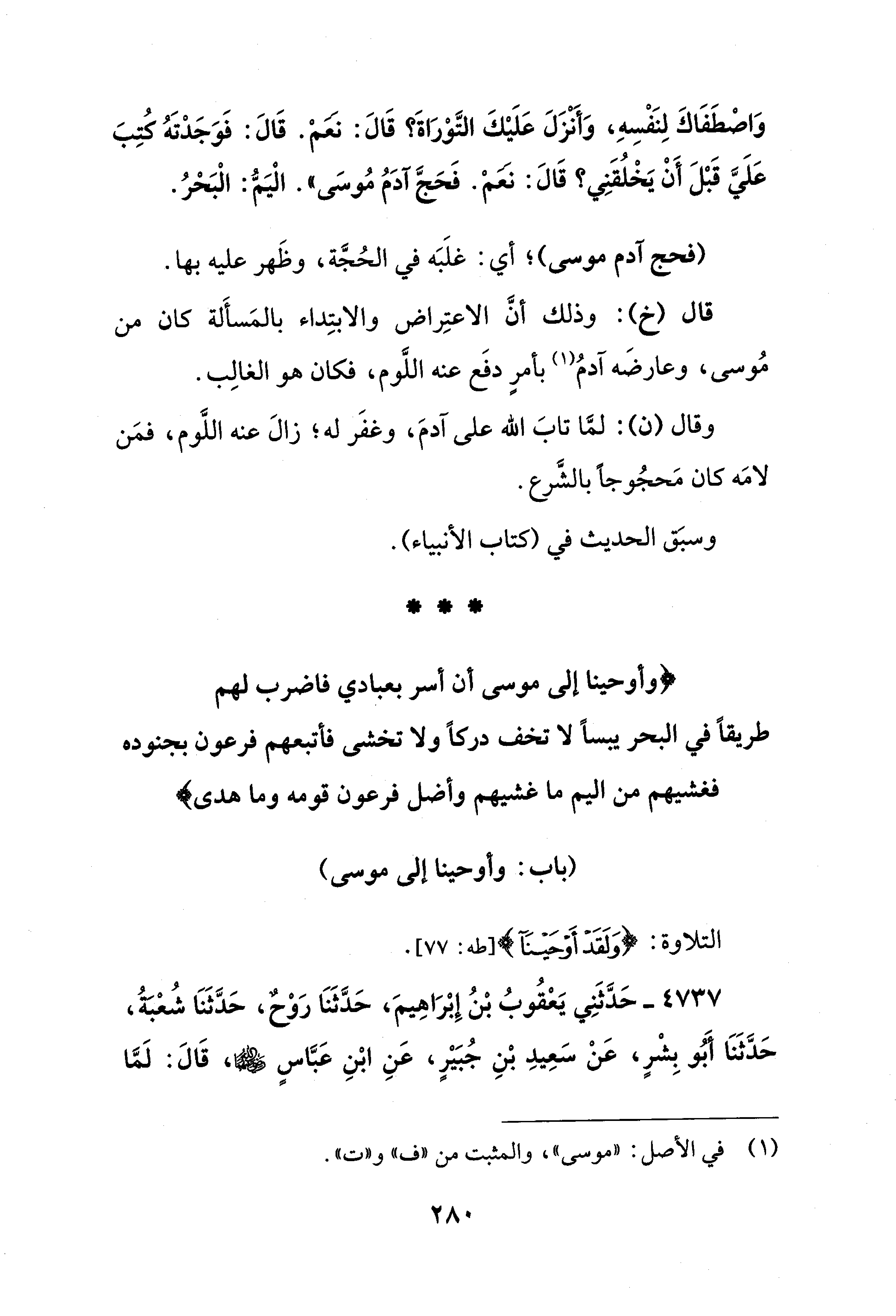 وَاصْطَفَاكَ لِنَفْسِهِ، وَأنزَلَ عَلَيْكَ التَّوْرَاةَ؟ قَالَ: نعم. قَالَ: فَوَجَدتَهُ كُتِبَ عَلَيَّ قَبْلَ أَنْ يَخْلُقَنِي؟ قَالَ: نعم. فَحَجَّ آدَمُ مُوسَى". الْيَمُّ: الْبَحْرُ.
