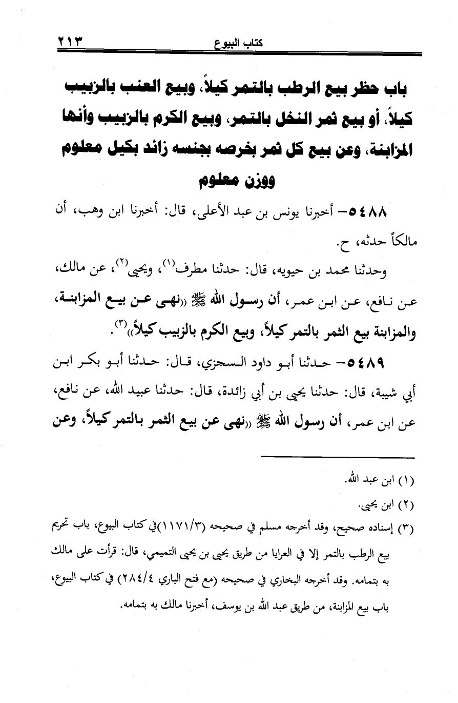 (¬3) إسناده صحيح، وقد أخرجه مسلم في صحيحه (3/ 1171) في كتاب البيوع، باب تحريم بيع الرطب بالتمر إلا في العرايا من طريق يحيى بن يحيى التميمي، قال: قرأت على مالك به بتمامه. وقد أخرجه البخاري في صحيحه (مع فتح الباري 4/ 284) في كتاب البيوع، باب بيع المزابنة، من طريق عبد الله بن يوسف، أخبرنا مالك به بتمامه.