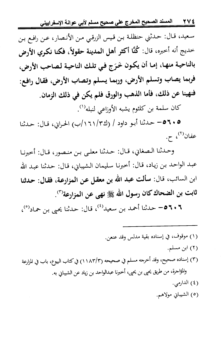(¬3) إسناده صحيح، وقد أخرجه مسلم في صحيحه (3/ 1182) في كتاب المزارعة، باب كراء الأرض، من طريق يحيى بن حماد، أخبرنا أبو عوانة فذكره بتمامه.