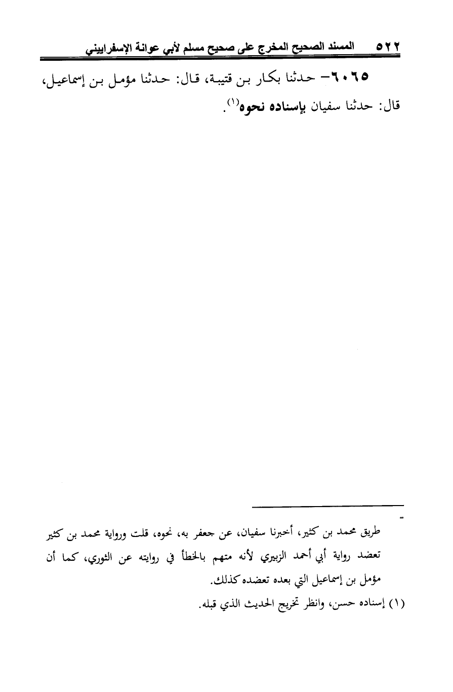 6065 - حدثنا بكار بن قتيبة، قال: حدثنا مؤمل بن إسماعيل، قال: حدثنا سفيان بإسناده نحوه (¬1).
