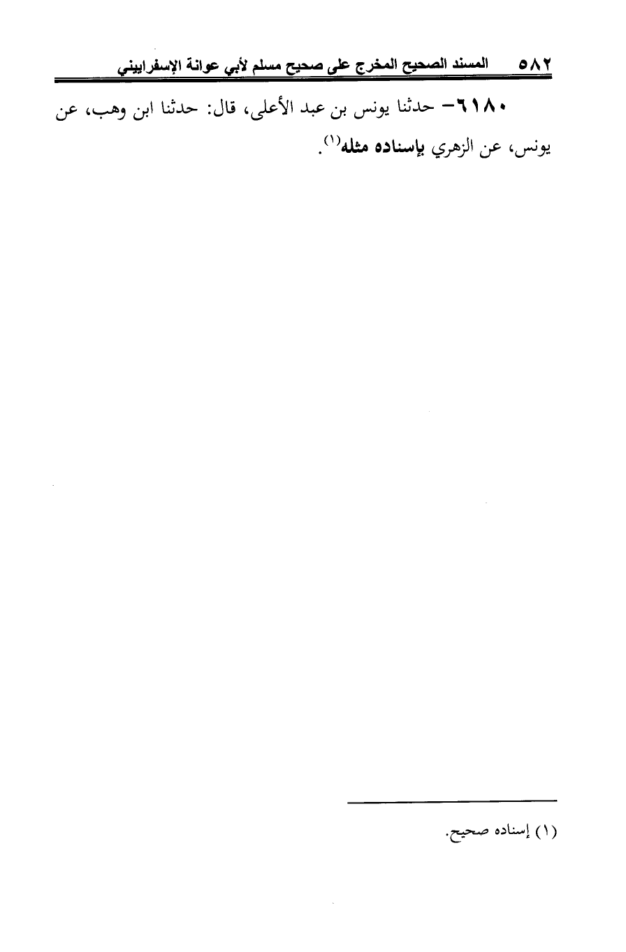 6180 - حدثنا يونس بن عبد الأعلى، قال: حدثنا ابن وهب، عن يونس، عن الزهري بإسناده مثله (¬1).