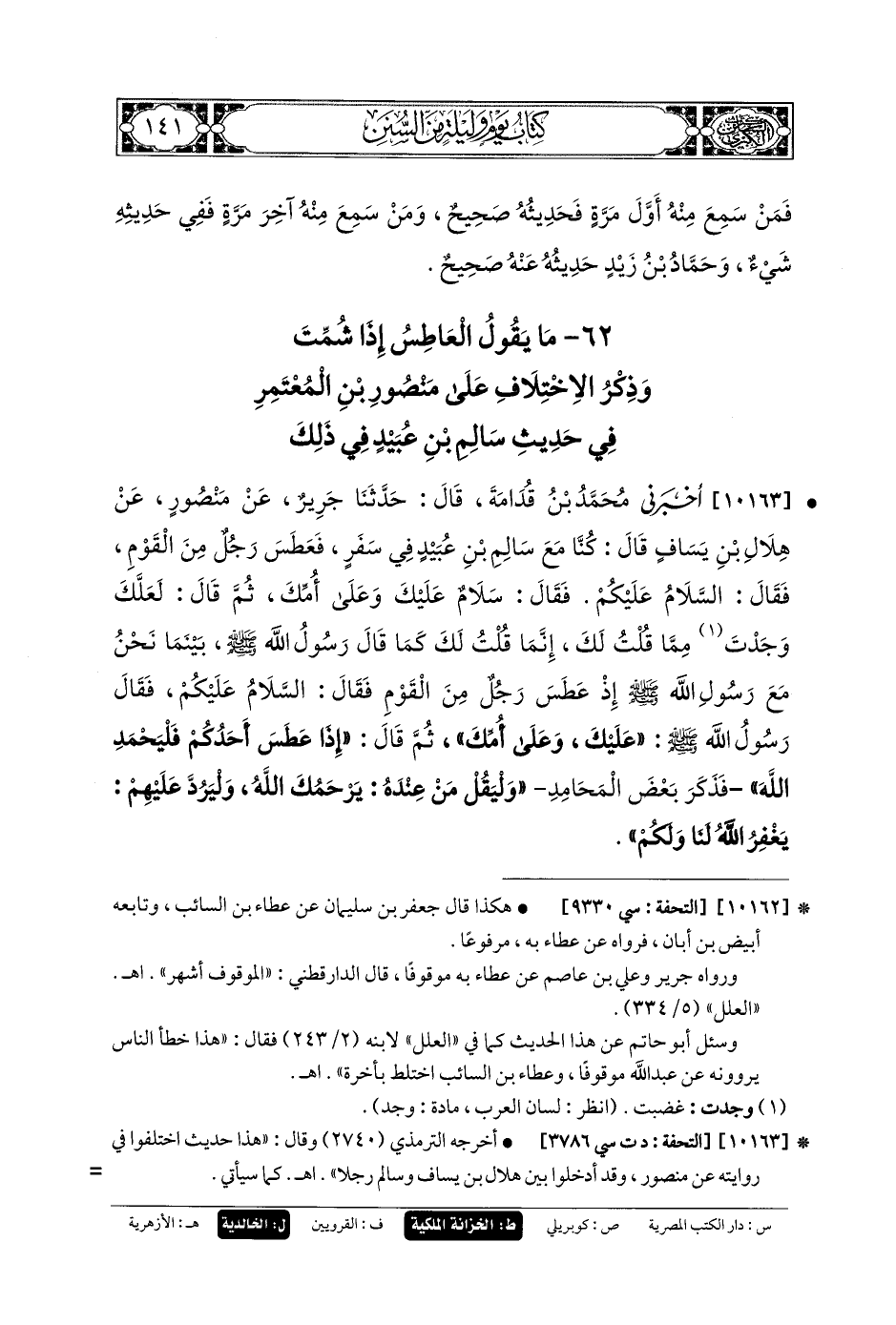 61- مَا يَقُولُ العَاطِسُ إِذَا شُمِّتَ.