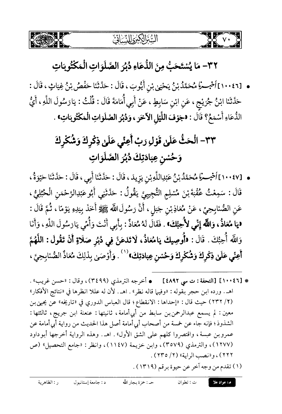 32- مَا يُسْتَحَبُّ مِنَ الدُّعَاءِ دُبُرَ الصَّلَوَاتِ المَكْتُوبَاتِ.
