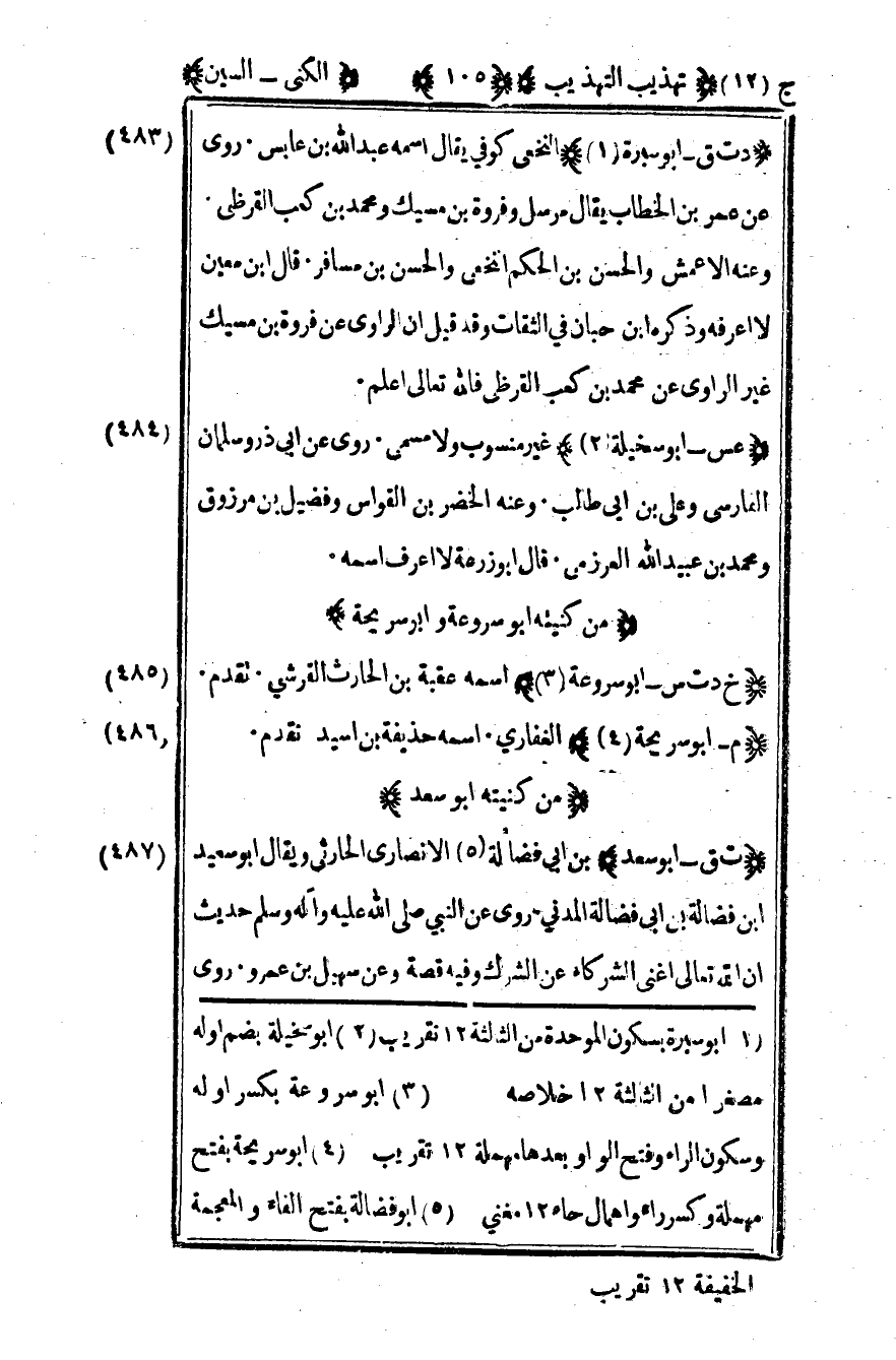 2 أبو سريحة بفتح مهملة وكسر راء وإهمال حاء 12 مغني.